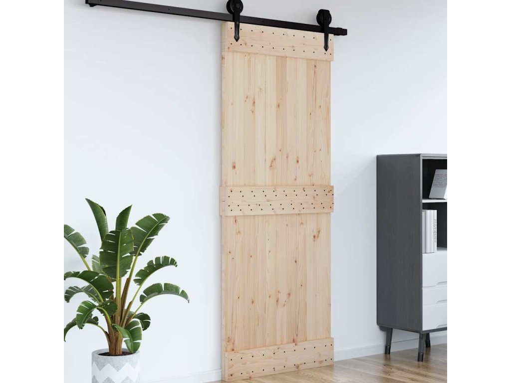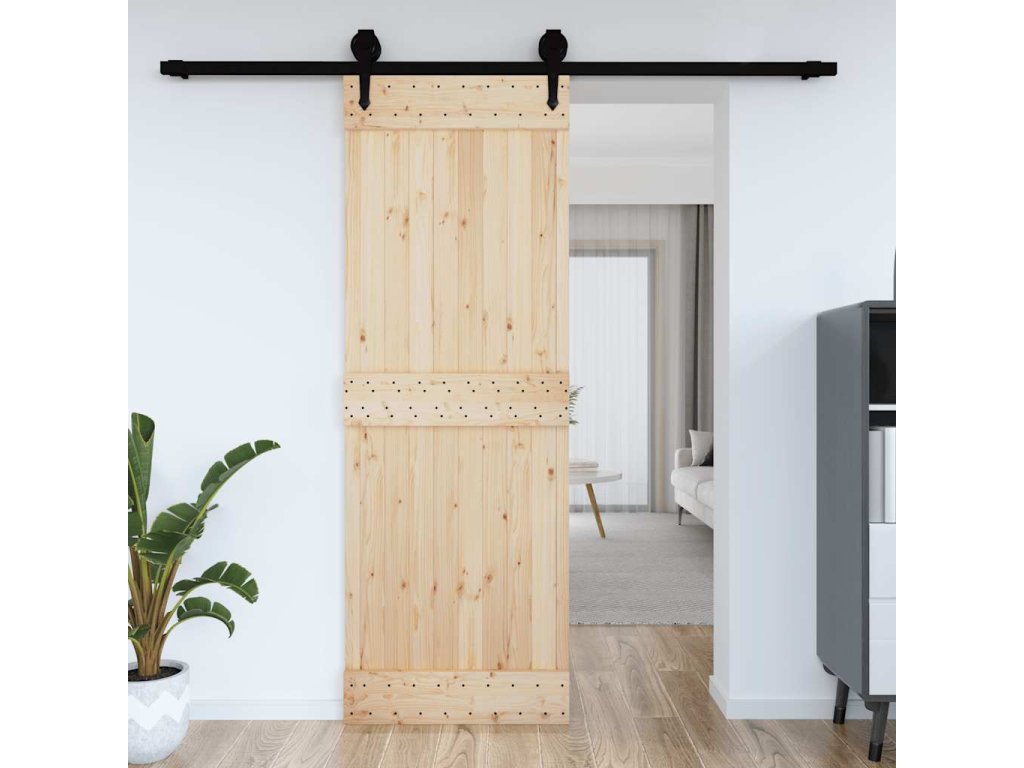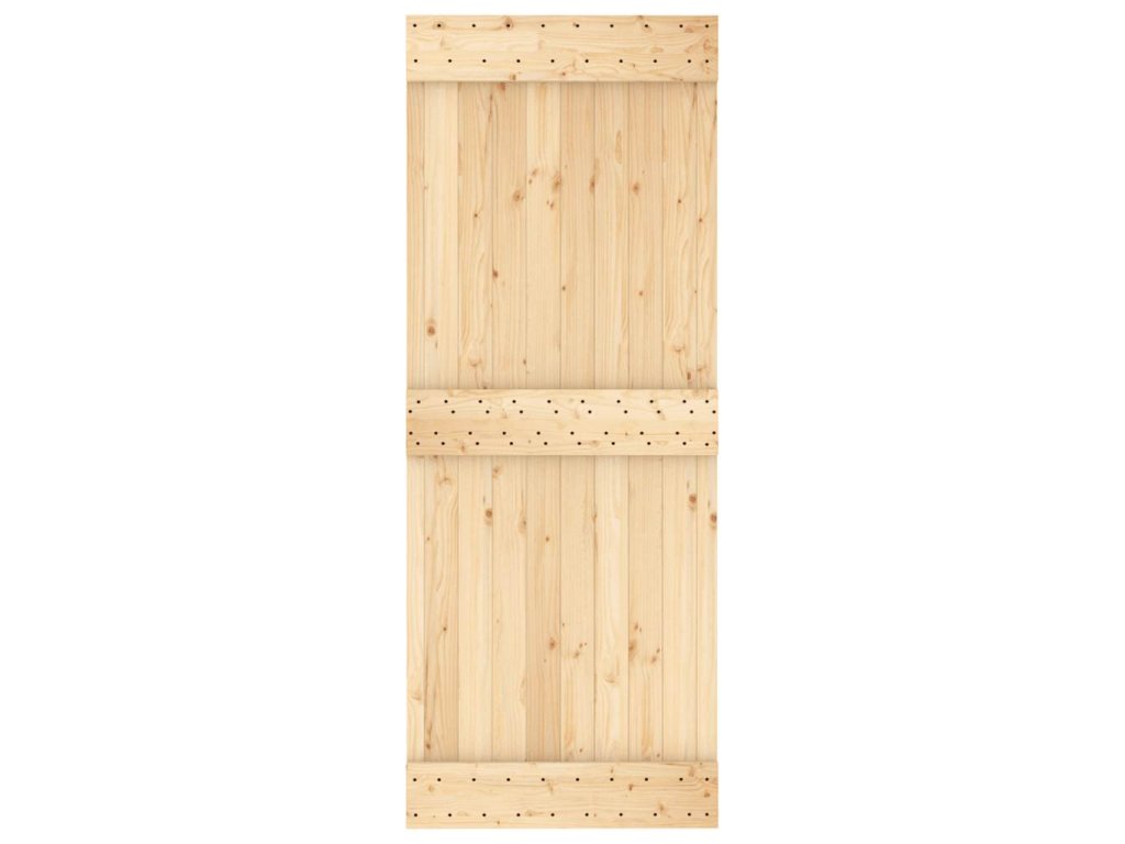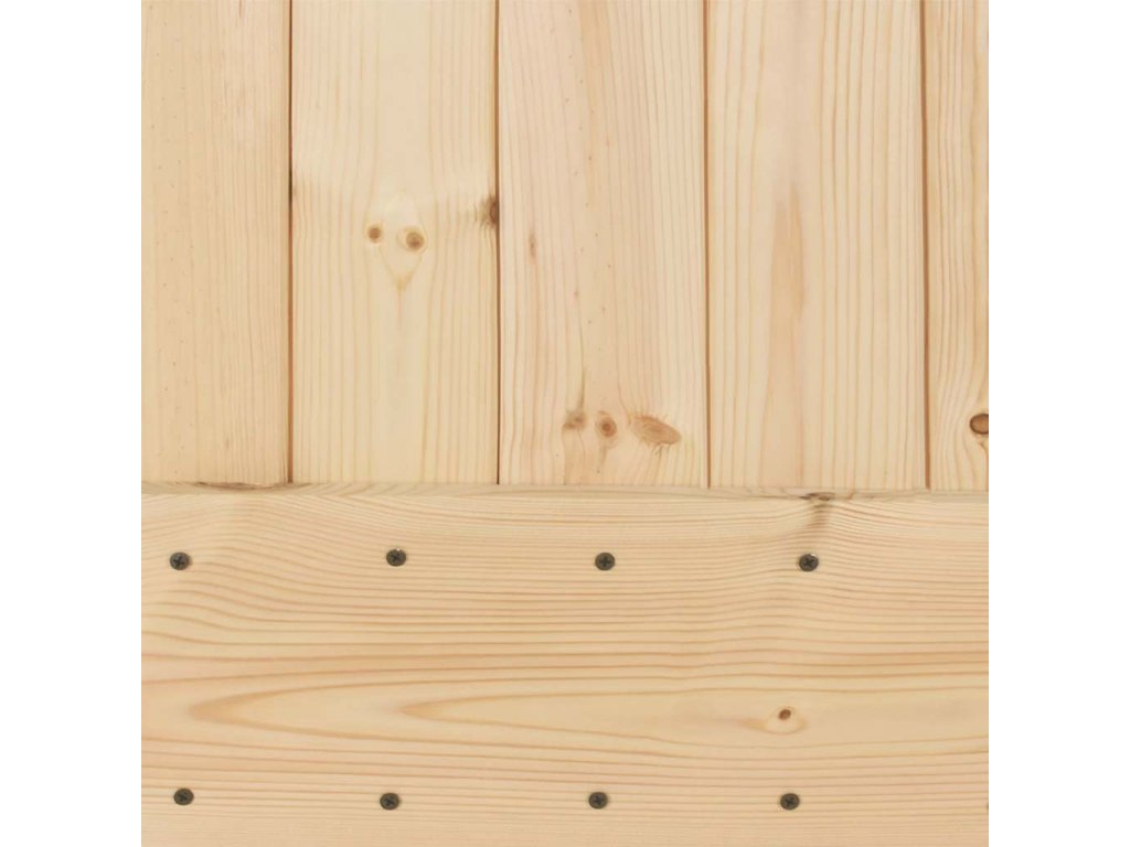 - Masívne borovicové drevo: Dvere sú vyrobené z masívneho borovicového dreva. Masívne borovicové drevo je krásny prírodný materiál. Borovicové drevo má rovnú štruktúru a uzly dodávajú materiálu jeho typický rustikálny vzhľad.