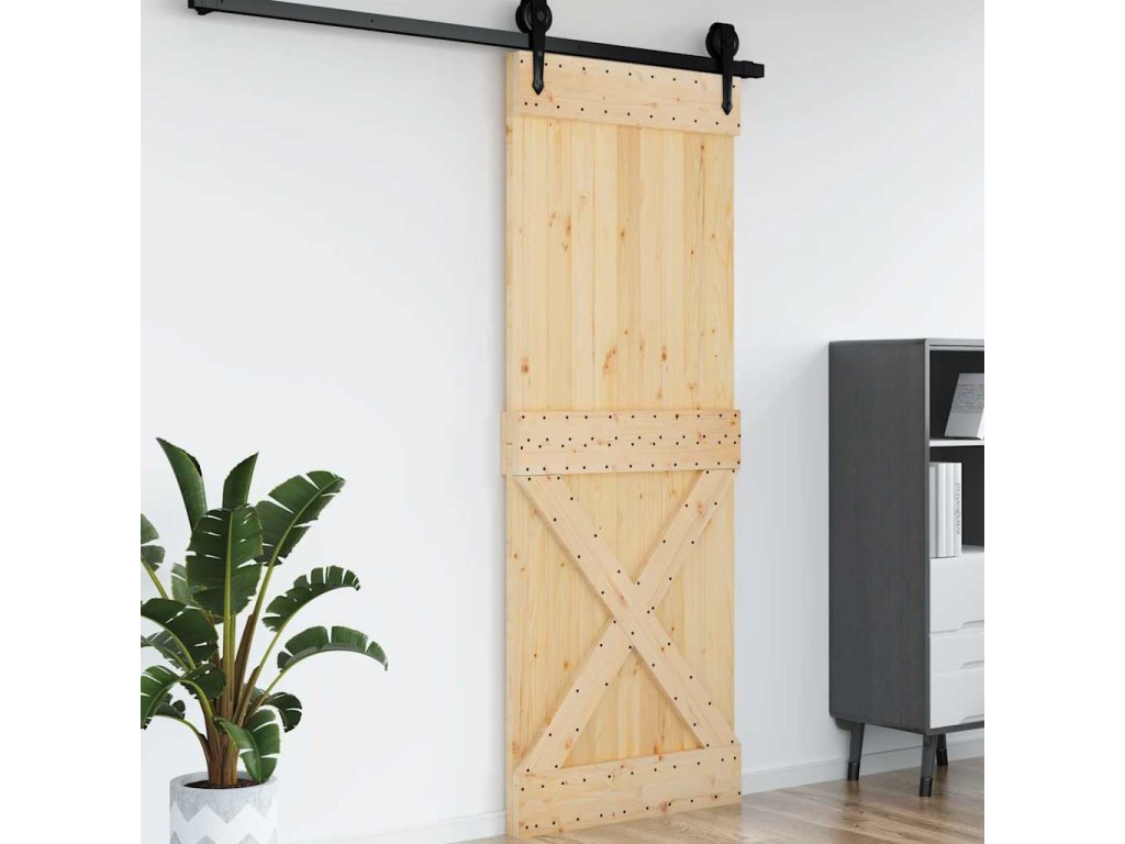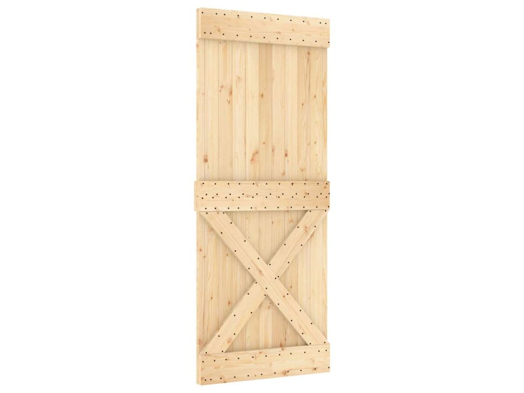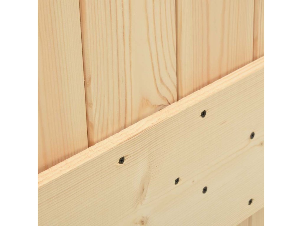 - Masívne borovicové drevo: Dvere sú vyrobené z masívneho borovicového dreva. Masívne borovicové drevo je krásny prírodný materiál. Borovicové drevo má rovnú štruktúru a uzly dodávajú materiálu jeho typický rustikálny vzhľad.