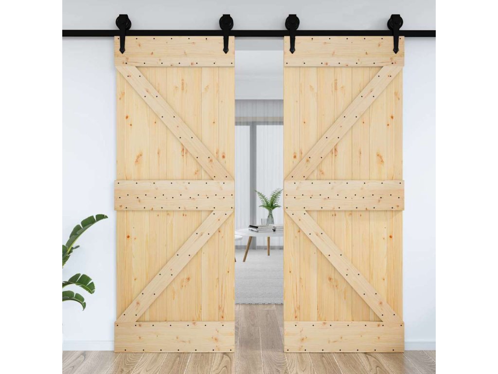 - Masívne borovicové drevo: Dvere sú vyrobené z masívneho borovicového dreva. Masívne borovicové drevo je krásny prírodný materiál. Borovicové drevo má rovnú štruktúru a uzly dodávajú materiálu jeho typický rustikálny vzhľad.