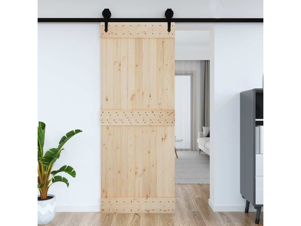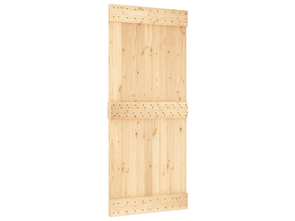 - Masívne borovicové drevo: Dvere sú vyrobené z masívneho borovicového dreva. Masívne borovicové drevo je krásny prírodný materiál. Borovicové drevo má rovnú štruktúru a uzly dodávajú materiálu jeho typický rustikálny vzhľad.