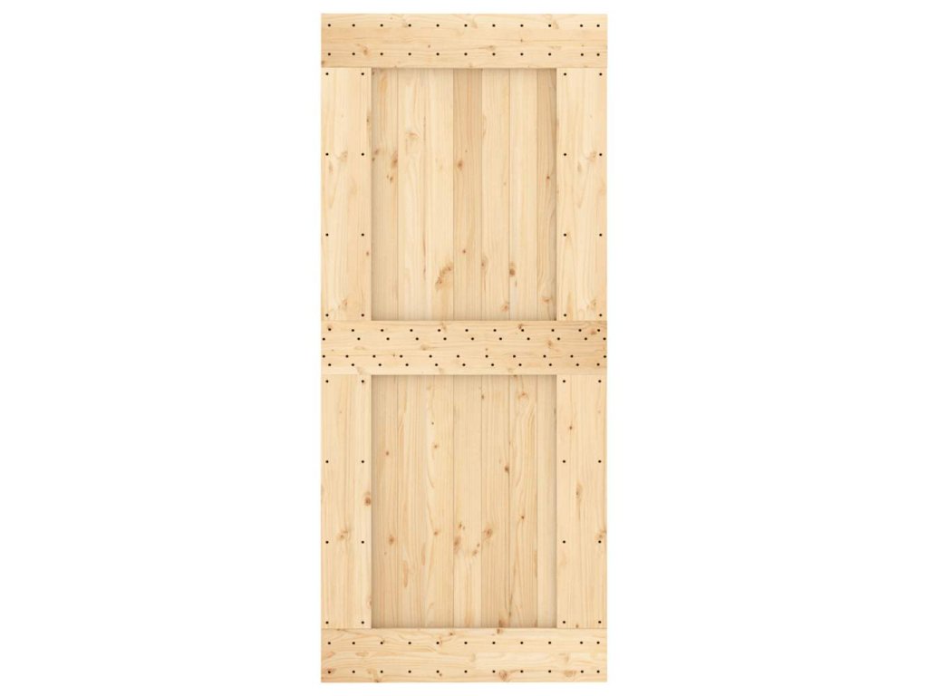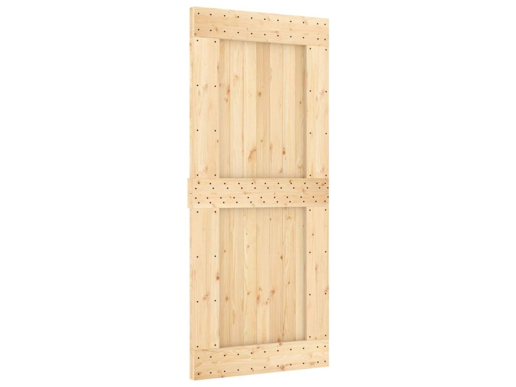 - Masívne borovicové drevo: Dvere sú vyrobené z masívneho borovicového dreva. Masívne borovicové drevo je krásny prírodný materiál. Borovicové drevo má rovnú štruktúru a uzly dodávajú materiálu jeho typický rustikálny vzhľad.