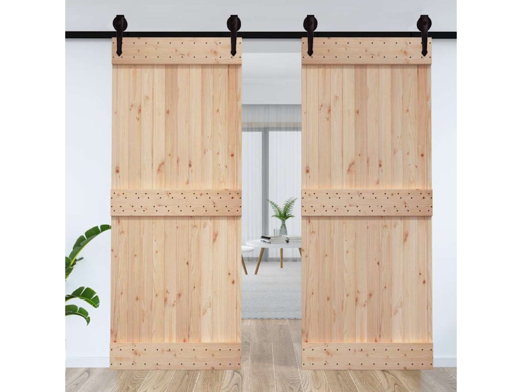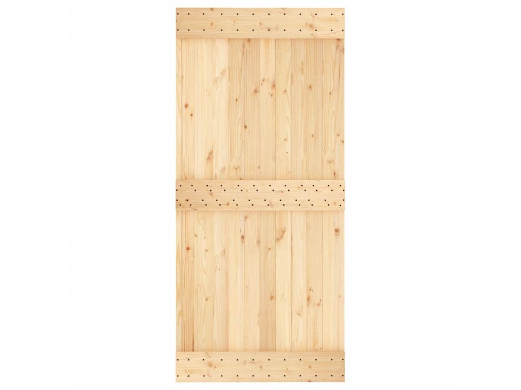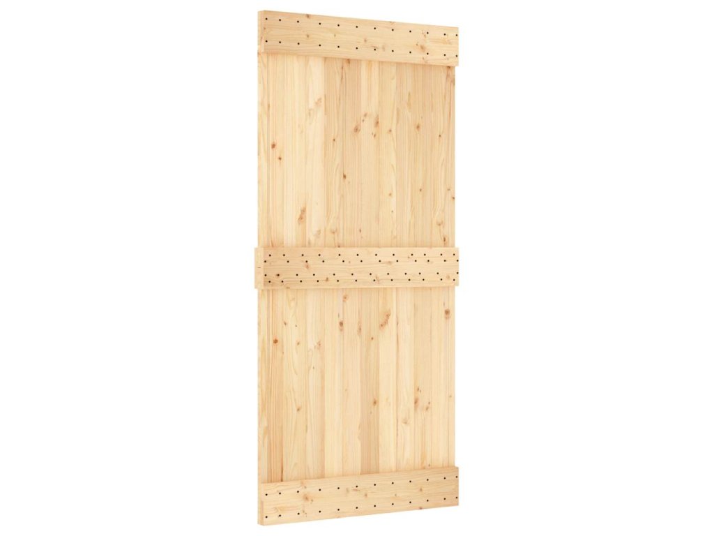 - Masívne borovicové drevo: Dvere sú vyrobené z masívneho borovicového dreva. Masívne borovicové drevo je krásny prírodný materiál. Borovicové drevo má rovnú štruktúru a uzly dodávajú materiálu jeho typický rustikálny vzhľad.