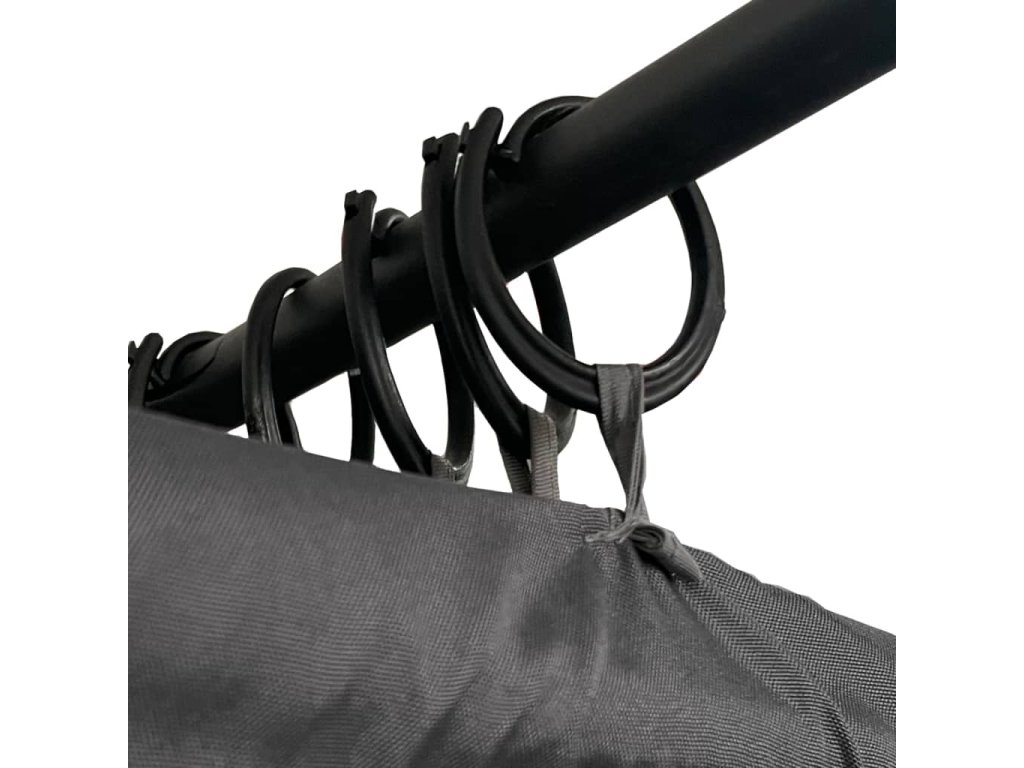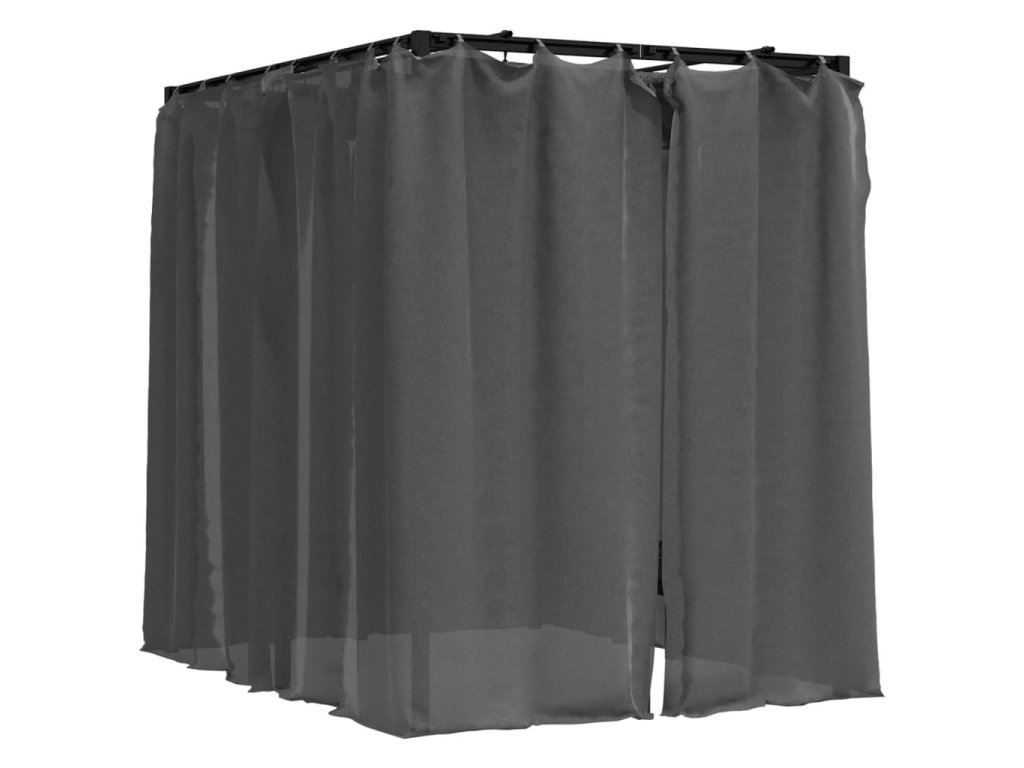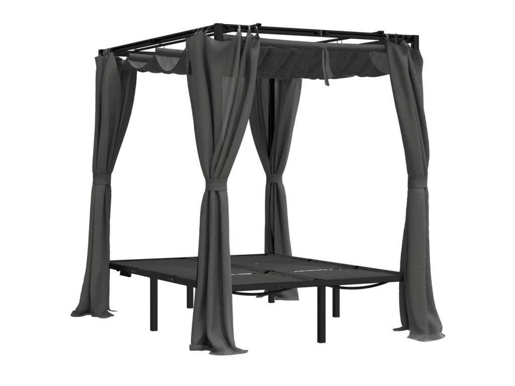 - Praktická strieška: Strieška a závesy dodávajú luxusný vzhľad, sú ideálne na ochranu pred hmyzom a poskytujú tieň a súkromie. Závesy sa dajú stiahnuť a uložiť, aby ste si mohli voľne užívať slnko.