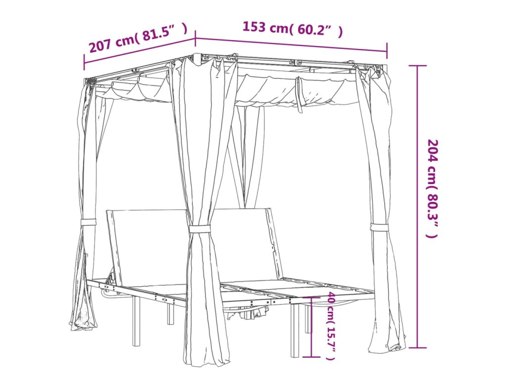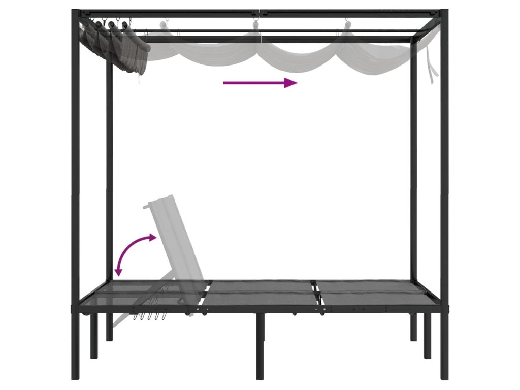 Toto dvojité záhradné ležadlo s baldachýnom stelesňuje kombináciu štýlu a funkčnosti, a poskytne vám ideálne miesto na oddychovanie pri bazéne, na terase či v záhrade.