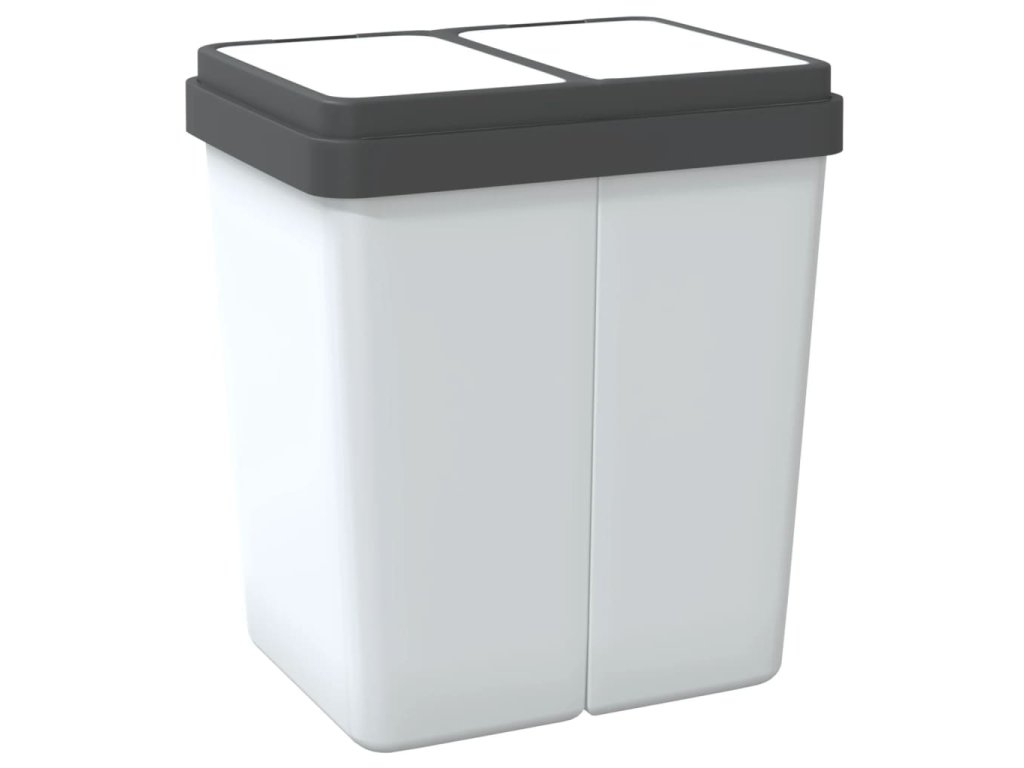 - Dvojkomorový kôš: Tento recyklačný kôš obsahuje dve oddelené 25-litrové priehradky a je skvelý na uchovávanie recyklovateľného materiálu oddelene od bežného a potravinového odpadu.