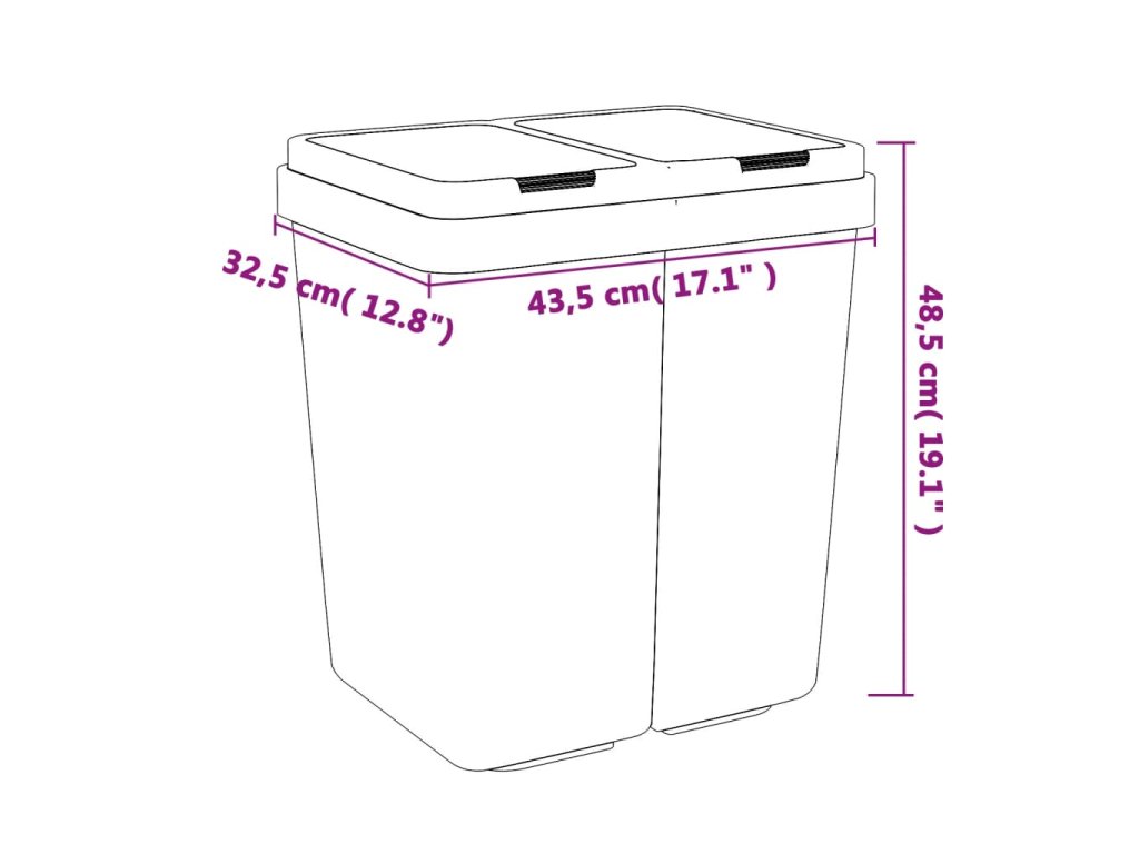 - Odolný materiál: Duálny luchynský box je vyrobený z PP, ktorý je obľúbený pre svoju vysokú odolnosť voči poškodeniu, pevnosť a dlhotrvajúcu kvalitu. Vďaka tomu je kôš odolný a ľahko sa čistí.