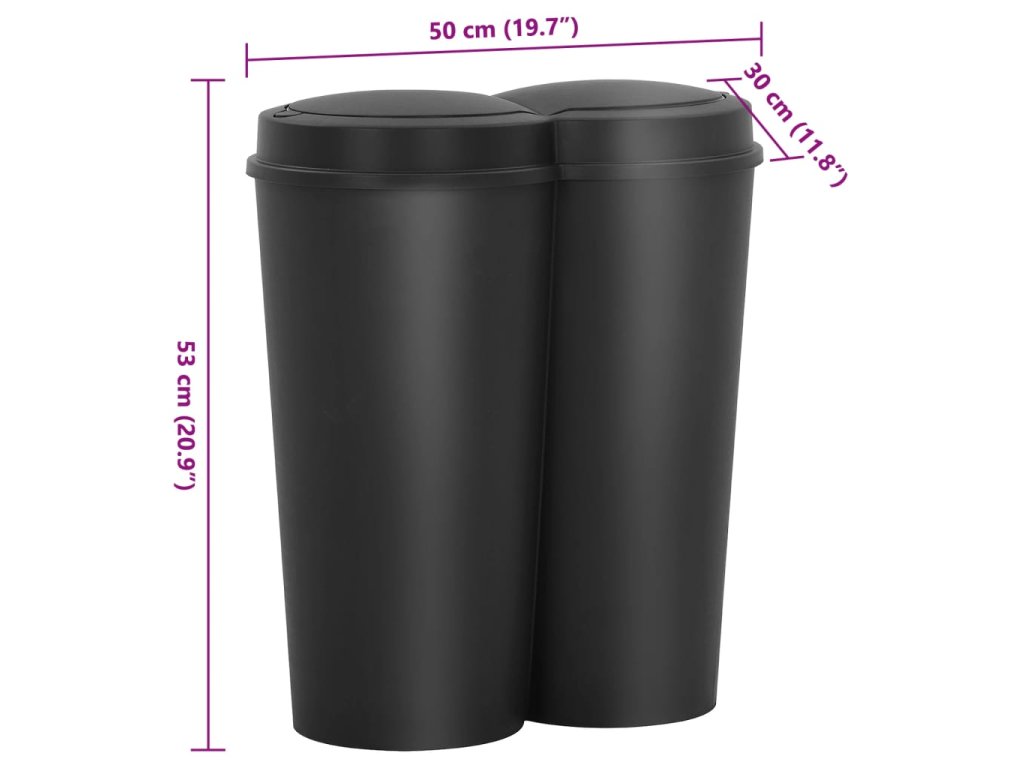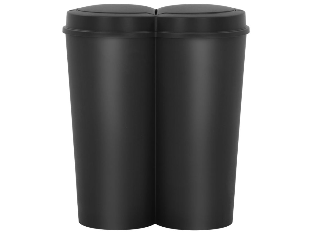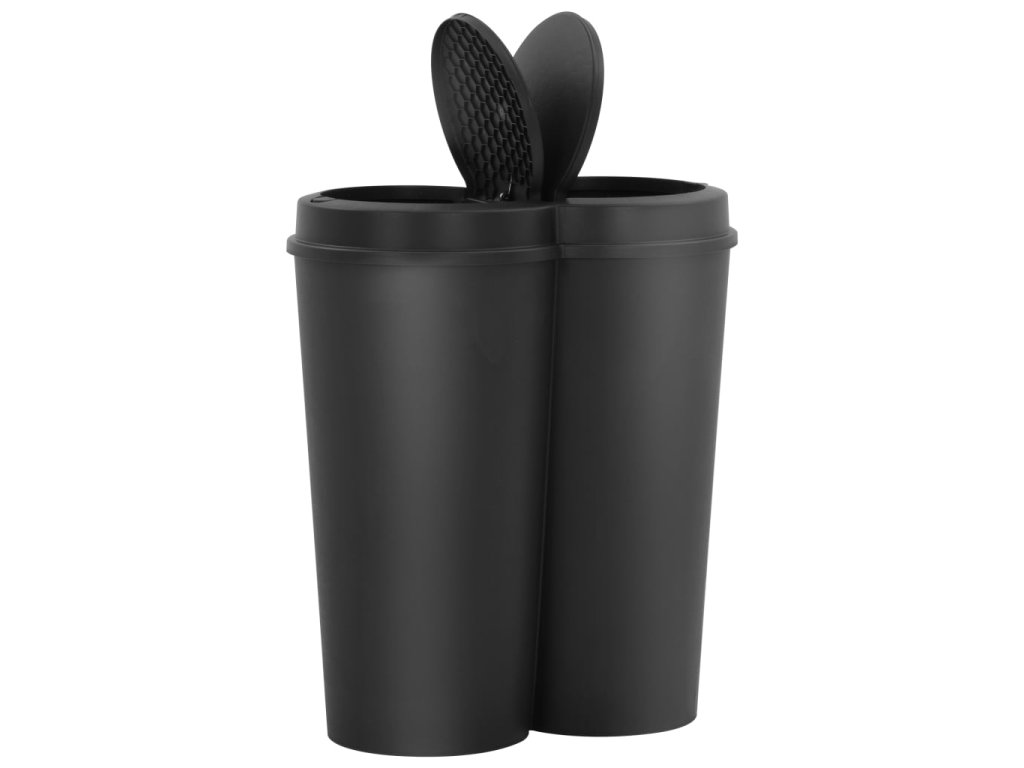Odpadkový kôš je vybavený dvojitou nádobou na odpadky pre funkčné triedenie odpadu. Obe nádoby na odpad sú vybavené tlačidlom pre rýchle otvorenie. Vrchnáky môžete úplne odstrániť a zavesiť vrecká na odpadky. Pevné zatváranie vrchnáka zaručuje, že sa v kuchyni nebudú šíriť nepríjemné pachy.