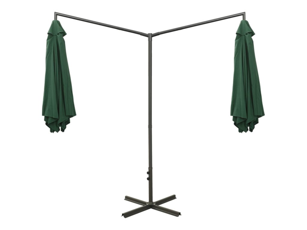 Tento slnečník je vyrobený z polyesteru, ktorý vám poskytne optimálnu ochranu pred spálením od slnka. Robustný oceľový stĺpik spolu s pevnými oceľovými rebrami udržuje dáždnik stabilný. Je vybavený oceľovou krížovou základňou, ktorá zvyšuje stabilitu. Dizajn dvoch vrchných plôch vedľa seba z neho robí praktický, elegantný a jedinečný slnečník, ktorý poskytuje nielen tieň vo vašom vonkajšom obytnom priestore, ale je aj pútavejší. Okrem toho sa dá tiež ľahko otvárať a zatvárať pomocou kľukového mechanizmu.