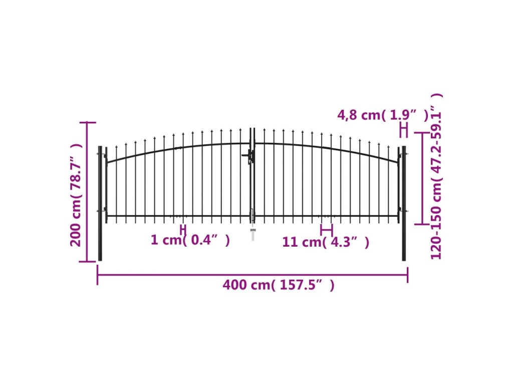 Brána pozostáva zo zvislých stĺpikov s hrotmi a z pevných vodorovných oporných tyčí, vďaka čomu zabezpečuje optimálnu bezpečnosť a súkromie a zároveň vytvára pôsobivý vstup na pozemok. Je vyrobená z odolnej ocele s práškovou povrchovou úpravou, vďaka čomu nepodlieha hrdzi ani korózii.