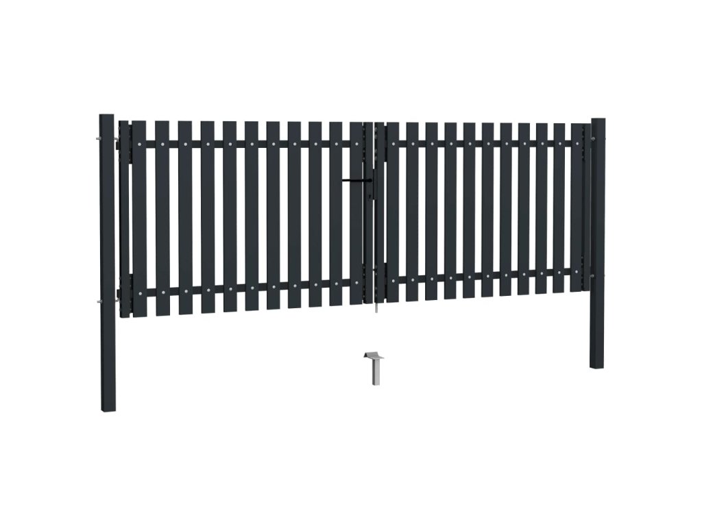 Táto dvojkrídlová plotová brána poslúži ako moderný a štýlový vstup k oploteniu záhrady, ktoré oddeľuje váš pozemok od okolitého sveta.