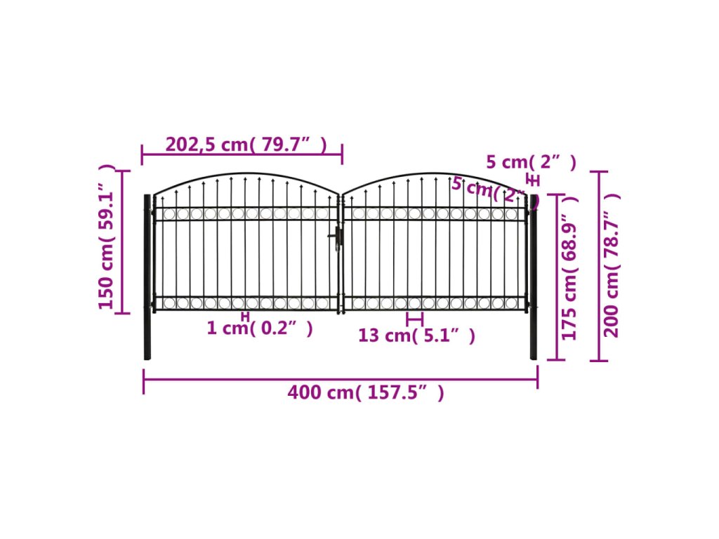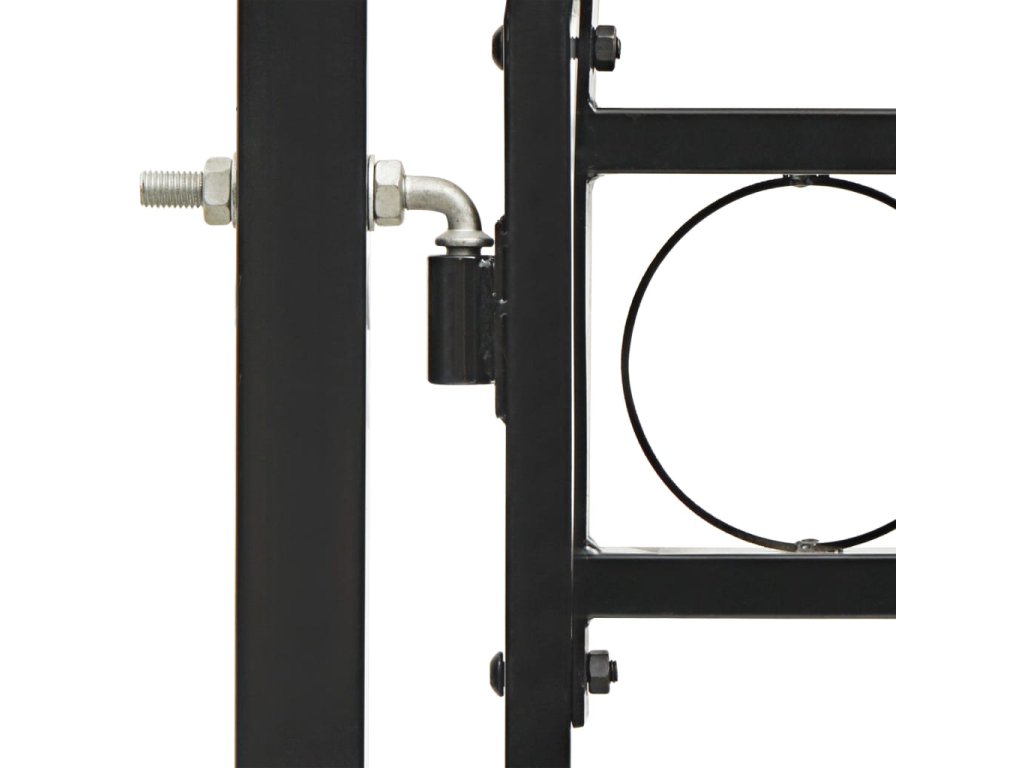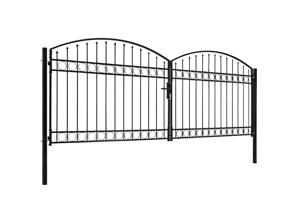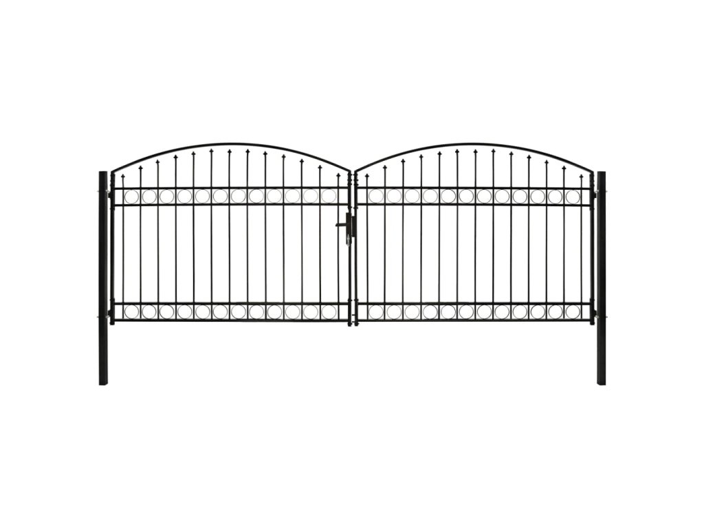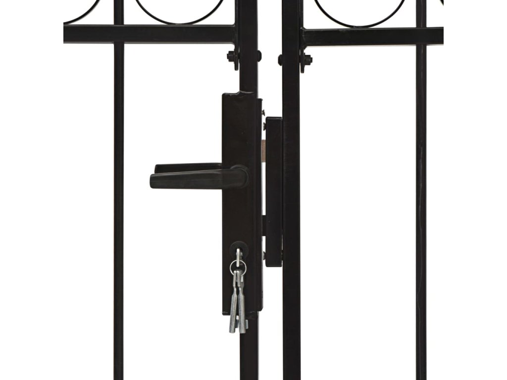 Vrchná časť záhradnej brány má elegantný zaoblený dizajn a vďaka pevným vodorovným oporným tyčiam na spevnenie rámu brána poskytuje optimálnu bezpečnosť a súkromie, a zároveň vytvára pôsobivý vstup na pozemok. Brána je vyrobená z pevnej ocele s práškovou povrchovou úpravou, ktorá je odolná voči hrdzi a korózii.