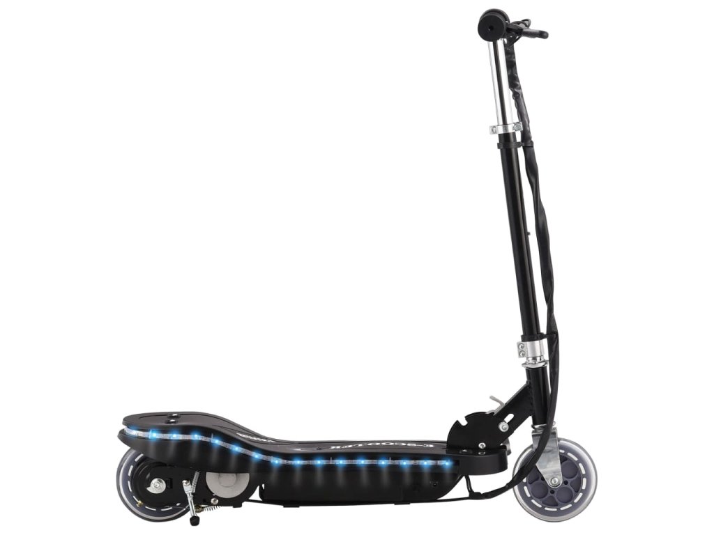 Kolobežka je vyrobená 3-farebným LED pásom, a tak je nielen atraktívnejšia ale aj lepšie viditeľná na tmavých miestach. Táto elektrická kolobežka jazdí naozaj hladko, potichu a je vybavená elektromotorom. Súčasťou kolobežky je výkonná batéria, ktorá funguje až 30 minút (v závislosti od nabitia). Kolobežka má zadnú brzdu. Elektrická kolobežka je vyrobená z hliníka a ocele a má robustný skladací rám. Riadidlá sa dajú nastaviť podľa výšky dieťaťa. Kolobežka má dômyselne riešený skladací dizajn, takže sa dá jednoducho preniesť aj skladovať.