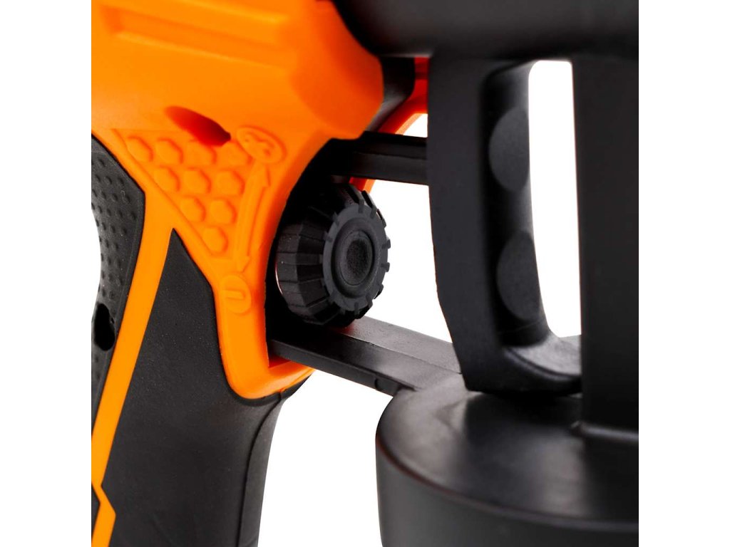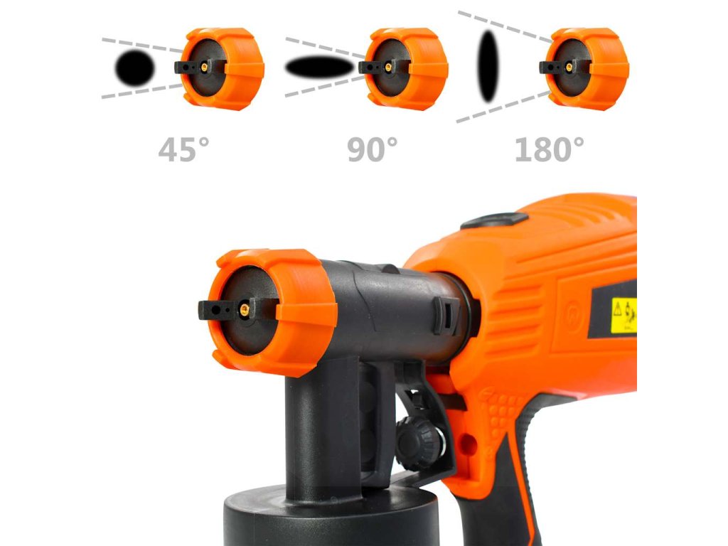 Striekacia pištoľ je vybavená tromi tryskami rôznych veľkostí pre rôzne úlohy počas maľovania. Môžete odskrutkovať maticu a otočiť ju do 3 rôznych polôh pre 3 rôzne vzory striekania: kruhový, vertikálny a horizontálny prúd. Striekacia pištoľ využíva technológiu HVLP (high volume low pressure), ktorá prináša vyšší podielu farby, ktorá sa dostane na cieľový povrch so zníženým prestrekovaním, spotrebou materiálu a znečistením vzduchu. Okrem toho využíva porézny odvod tepla, ktorý efektívne zaisťuje odvod tepla pri zohľadnení krásy, praktickosti a zvyšuje životnosť produktu. Striekacia pištoľ, vyrobená s kombináciou častí, sa dá ľahko rozobrať a vyčistiť, a jednoducho opraviť a vymeniť. Takže sa už nemusíte starať o údržbu zariadenia. Vďaka svojej nízkej hmotnosti je pištoľ vhodná na použitie jednou rukou, preto budete môcť pracovať dlhšie bez únavy.