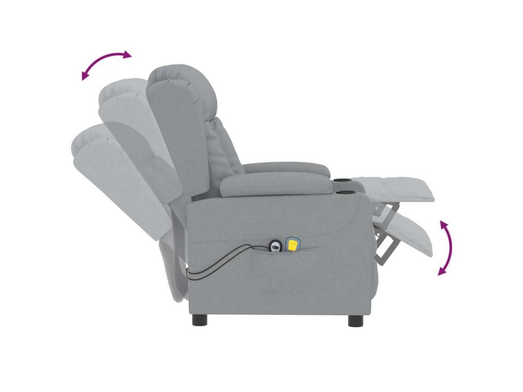 - Funkcia sklápania: Toto polohovacie kreslo je vybavené elektrickým motorčekom, ktorý umožňuje sklápanie operadla. Kreslo sa dá sklopiť do 3 rôznych polôh, a tak si môžete jednoducho nastaviť operadlo aj opierku na nohy do požadovanej polohy pomocou ručného ovládania s 2 tlačidlami, ktoré je súčasťou balenia.