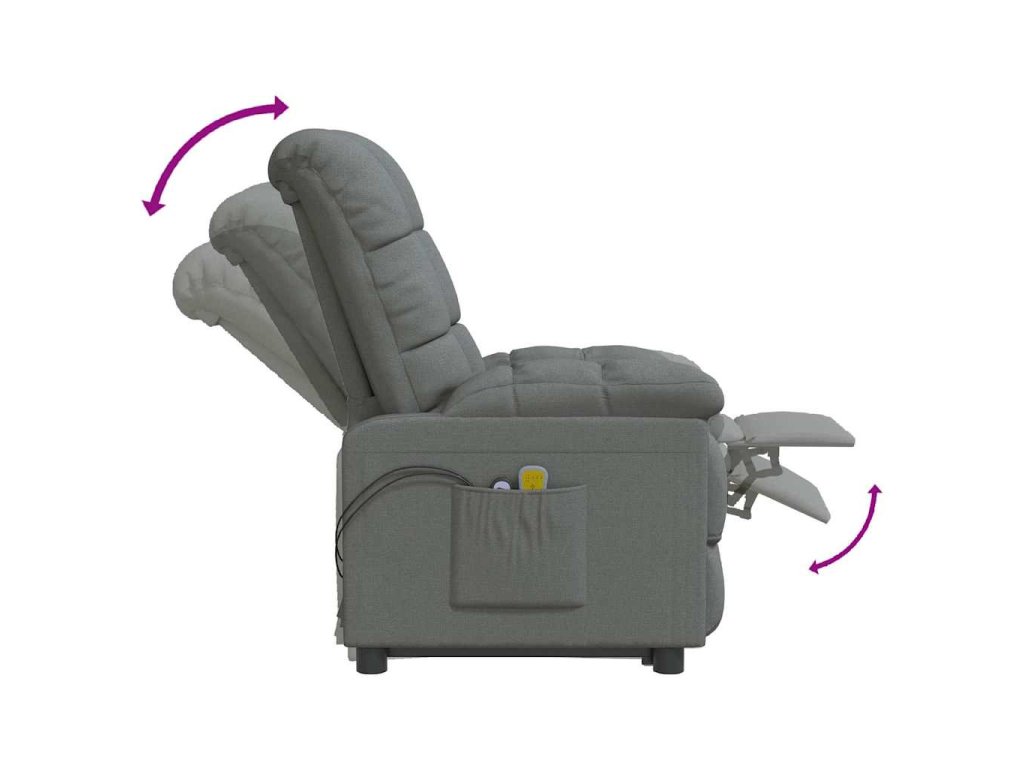 - Funkcia sklápania: Toto polohovacie kreslo je vybavené elektrickým motorčekom, ktorý umožňuje sklápanie operadla. Kreslo sa dá sklopiť do 3 rôznych polôh, a tak si môžete jednoducho nastaviť operadlo aj opierku na nohy do požadovanej polohy pomocou ručného ovládania s 2 tlačidlami, ktoré je súčasťou balenia.