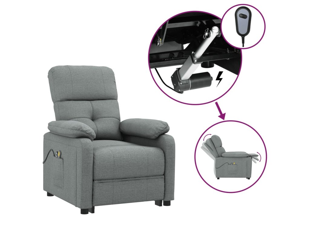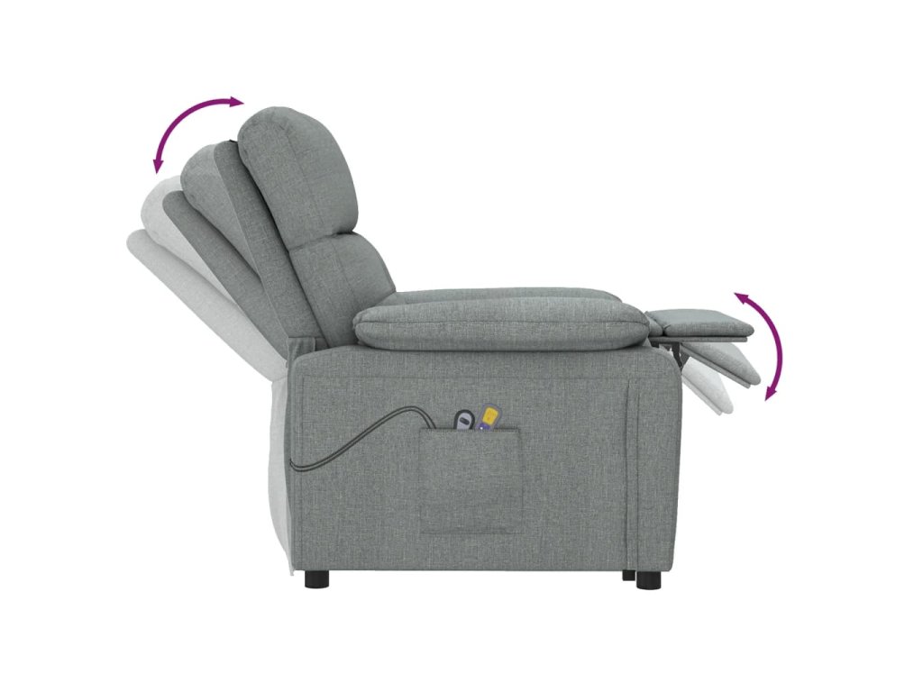 - Funkcia sklápania: Toto polohovacie kreslo je vybavené elektrickým motorčekom, ktorý umožňuje sklápanie operadla. Kreslo sa dá sklopiť do 3 rôznych polôh, a tak si môžete jednoducho nastaviť operadlo aj opierku na nohy do požadovanej polohy pomocou ručného ovládania s 2 tlačidlami, ktoré je súčasťou balenia.