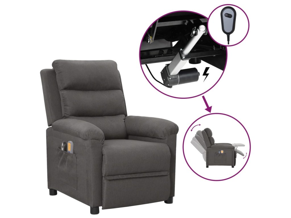 - Funkcia sklápania: Toto polohovacie kreslo je vybavené elektrickým motorčekom, ktorý umožňuje sklápanie operadla. Kreslo sa dá sklopiť do 3 rôznych polôh, a tak si môžete jednoducho nastaviť operadlo aj opierku na nohy do požadovanej polohy pomocou ručného ovládania s 2 tlačidlami, ktoré je súčasťou balenia.