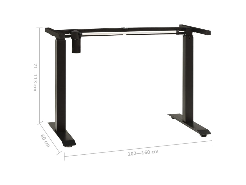 Tento stabilný rám stola je vyrobený z uhlíkovej ocele s práškovou povrchovou úpravou. Má nastaviteľnú šírku od 102 cm do 160 cm a výšku od 71 cm do 113 cm, aby ste si ho mohli prispôsobiť podľa potreby. Rám je vybavený ovládacím panelom s tlačidlami nahor/nadol pre rýchle a jednoduché upravenie. Môžete naň namontovať vašu pracovnú dosku, a tak dokonale zapadne do vášho pracovného priestoru. Rám je vhodný na stoly so šírkou 120-180 cm a hĺbkou 60-80 cm.