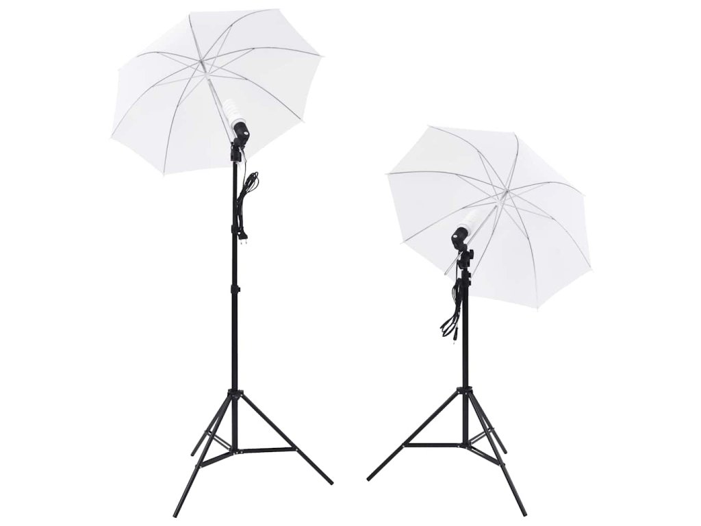 Sada dáždnikov má dve lampy denného osvetlenia s farebnou teplotou 5500 Kelvin, čo umožní zachytiť objekt prirodzeným spôsobom. Súprava je vhodná pre analógovú a digitálnu fotografiu. Statív pre dáždniky, ktorý je súčasťou balenia, je nastaviteľný do výšky 210 cm. Dva biele dáždniky poskytujú jemné svetlo, takže sa nebudú vytvárať rušivé tiene.