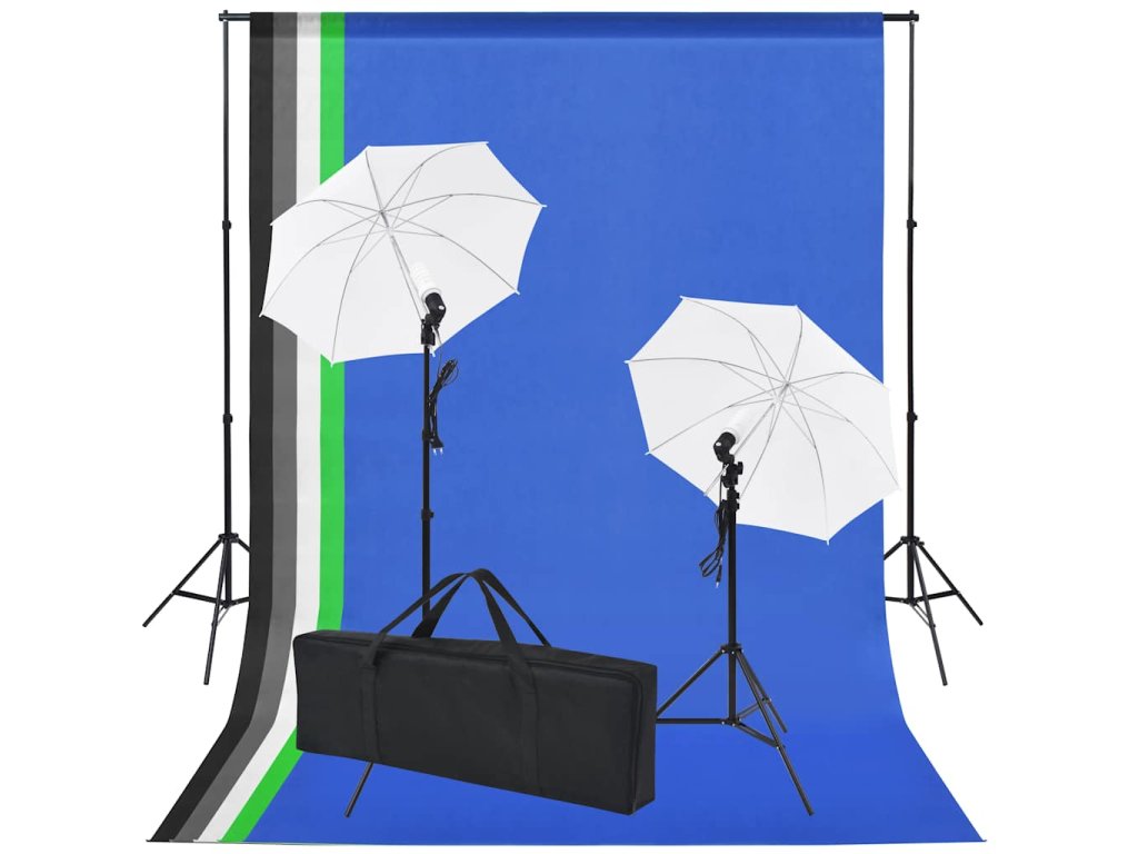 Sada pozadia a osvetľovacieho systému je nepostrádateľnou súčasťou profesionálneho fotografického vybavenia. Naša fotografická súprava obsahuje 5 pozadí, skladací, nastaviteľný rám, osvetľovacie dáždniky a nastaviteľné stojany. Všetko je zabalené do dvoch praktických tašiek, takže môžete jednoducho súpravu preniesť na miesto fotenia.
