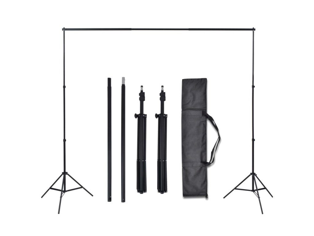 V balení sa nachádzajú 2 stojany, 2 priečne tyče, 3 fotopozadia a 1 praktická taška.