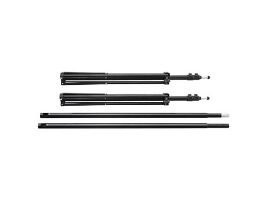 Systém je vyrobený z hliníka, vďaka čomu je ľahký a zložíte ho rýchlo a jednoducho. Dodáva sa spolu s bielym pozadím z bavlny. Systém sa dá používať aj v kombinácii s inými fotopozadiami (iných farieb alebo z iných materiálov) a/alebo s papierovými fotopozadiami. Systém má maximálnu šírku 300 cm. Ak si chcete tento systém so sebou zobrať do terénu, nebude s tým žiadny problém. Dá sa ľahko poskladať aj rozmontovať a okrem toho ho môžete jednoducho preniesť v praktickej taške s rozmermi cca 85 x 15 x 15 cm, ktorá sa nachádza v balení.