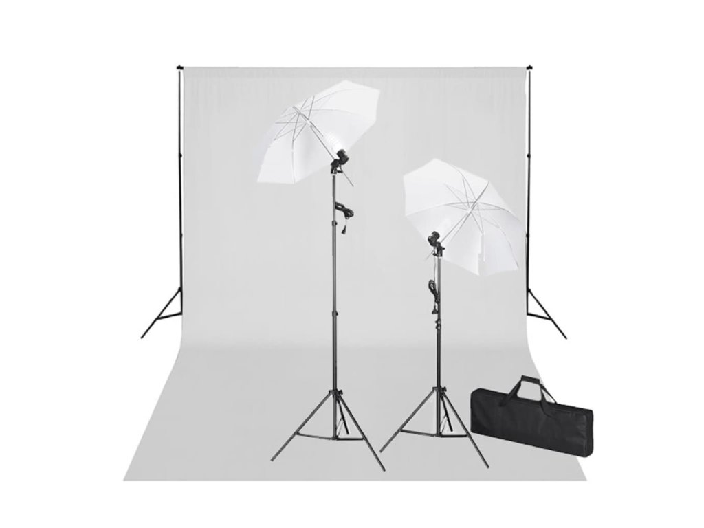 Toto vybavenie je vhodné do foto či video štúdií. Nachádza sa v ňom kompletné príslušenstvo na vytvorenie fotopozadia, vrátane extra širokého pozadia bielej farby s rozmermi 600 x 300 cm. Ďalej v ňom nájdete aj príslušenstvo na zabezpečenie osvetlenia v podobe dvoch lámp s denným svetlom a s dáždnikmi. Intenzita osvetlenia každej lampy je 24 wattov (efektivívny výkon zodpovedá 100 wattom). Budete môcť ihneď začať vytvárať rôzne druhy fotografií, napríklad produktové fotografie.