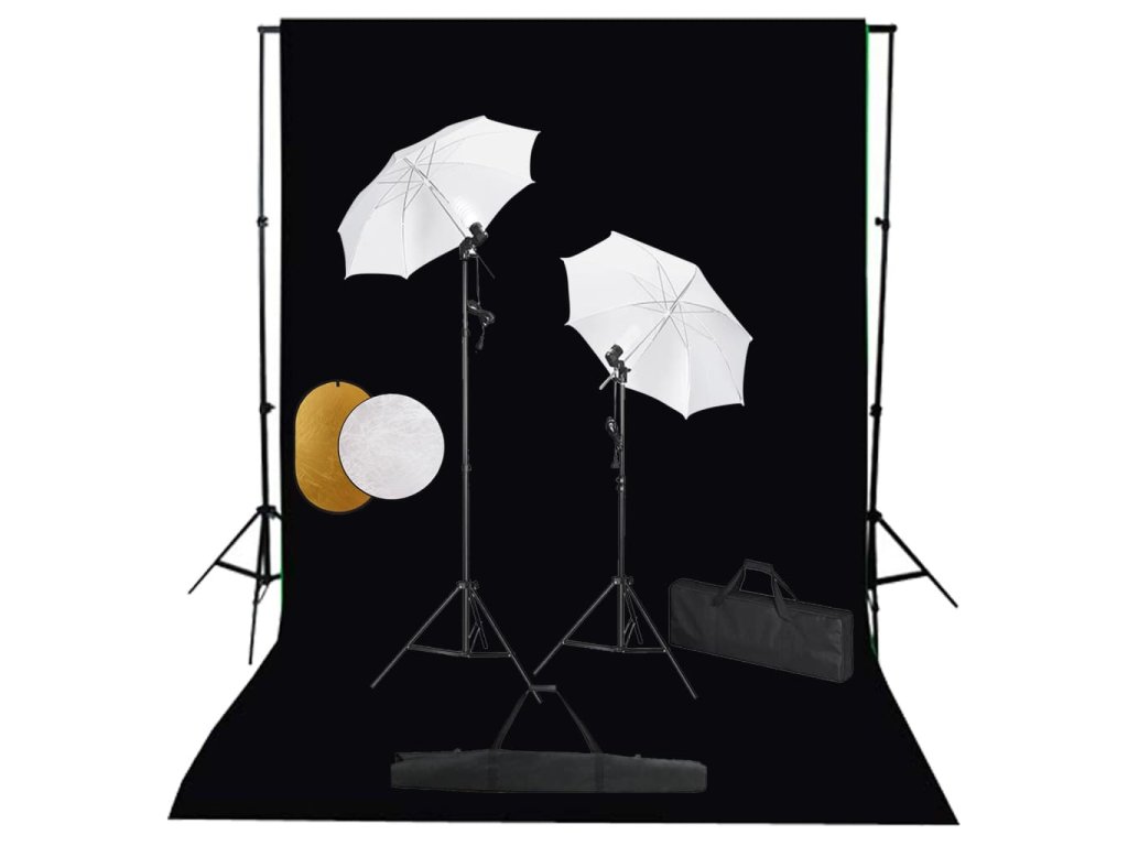 Teleskopický systém pozadia je nastaviteľný na šírku a výšku, aby vyhovoval vašim potrebám. V kombinácii s pozadím je ideálny na fotografovanie a filmovanie. Použitím žiaroviek denného svetla s farebnou teplotou 5500 Kelvinov je sada osvetlenia schopná zachytiť predmet prirodzeným spôsobom. Lampu môžete pripevniť na statív a dosiahnuť maximálnu výšku 230 cm. Dva biele dáždniky poskytujú mäkké svetlo, takže sa vyhnete výrazným tieňom. Statív má navyše štandardný 1/4" závit pre všetky analógové a digitálne fotoaparáty. Sada reflektorov obsahuje okrúhly reflektor 5 v 1 a elipsový reflektor 2 v 1. Každý reflektor je dodávaný s rôznymi povrchovými panelmi. Môže pracovať s rôznymi kombináciami pre teplejšie alebo chladnejšie svetlá. S pribalený prenosným vakom sa štúdiová súprava ľahko skladuje a prepravuje.