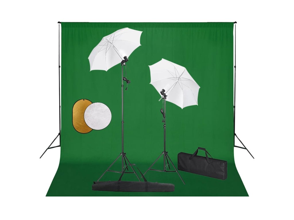 Teleskopický systém pozadia je nastaviteľný na šírku a výšku, aby vyhovoval vašim potrebám. V kombinácii s pozadím je ideálny na fotografovanie a filmovanie. Použitím žiaroviek denného svetla s farebnou teplotou 5500 Kelvinov je sada osvetlenia schopná zachytiť predmet prirodzeným spôsobom. Lampu môžete pripevniť na statív a dosiahnuť maximálnu výšku 230 cm. Dva biele dáždniky poskytujú mäkké svetlo, takže sa vyhnete výrazným tieňom. Statív má navyše štandardný 1/4" závit pre všetky analógové a digitálne fotoaparáty. Sada reflektorov obsahuje okrúhly reflektor 5 v 1 a elipsový reflektor 2 v 1. Každý reflektor je dodávaný s rôznymi povrchovými panelmi. Môže pracovať s rôznymi kombináciami pre teplejšie alebo chladnejšie svetlá. S pribalený prenosným vakom sa štúdiová súprava ľahko skladuje a prepravuje.
