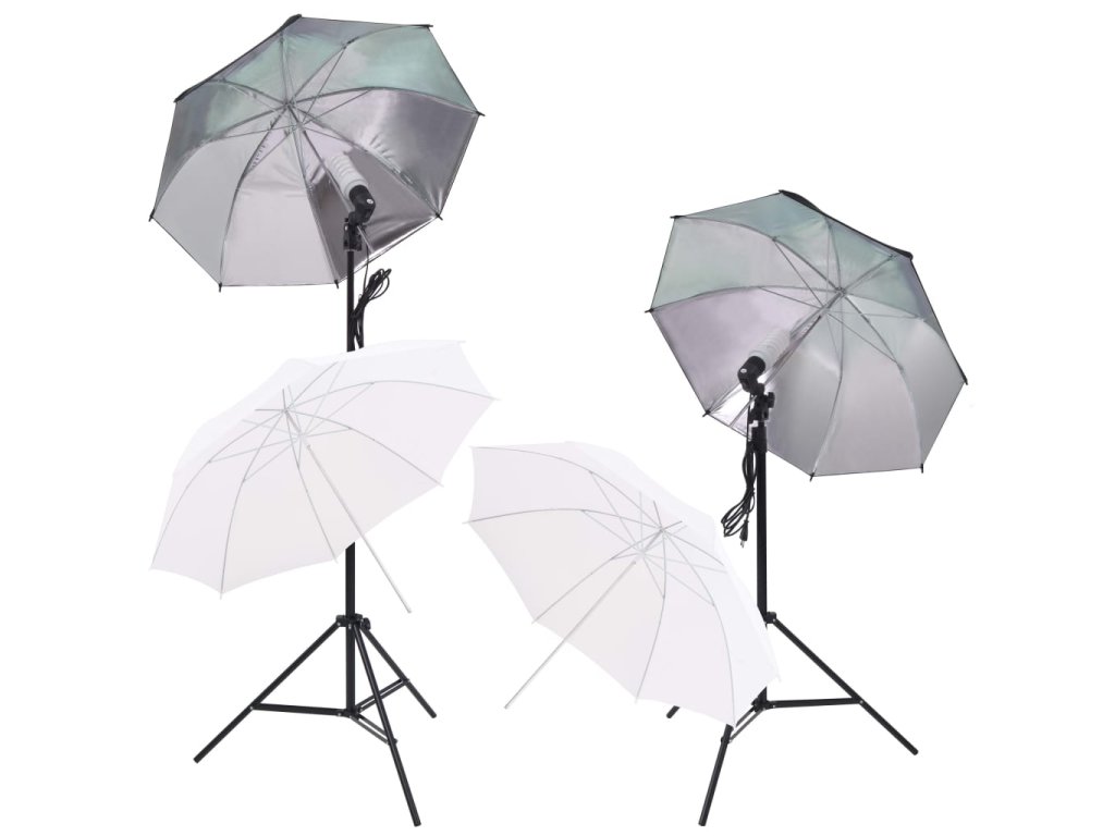 Systém dáždnikového osvetlenia taktiež pozostáva z dvoch lámp s nastaviteľnými statívmi. Dva biele a dva čierne dáždniky vytvárajú jemné svetlo, takže sa vyhýbajú prenikavým tieňom.