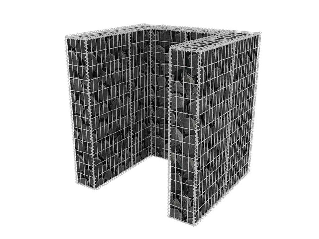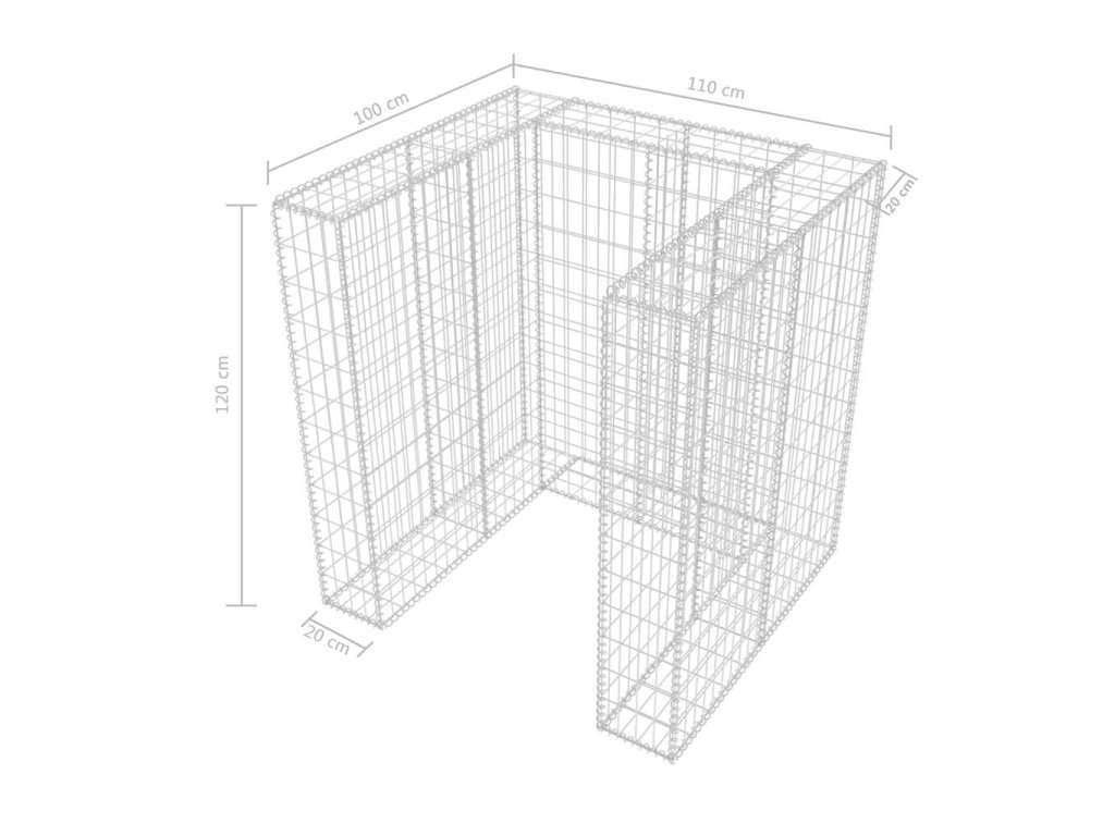 Táto stabilná a trvácna gabiónová ohrada na odpadkový kôš je vyrobená z pozinkovanej ocele, ktorá je odolná voči hrdzi a poveternostným vplyvom. Mriežku tvoria priečne a pozdĺžne drôty, ktoré sú bodovo zvarené na každom prieseku. Gabión je veľmi pevný, pretože je tvorený drôtom s priemerom 3,5 mm. Vrchné a spodné kryty gabiónu sa postarajú o to, aby jeho obsah po naplnení zostal na svojom mieste.