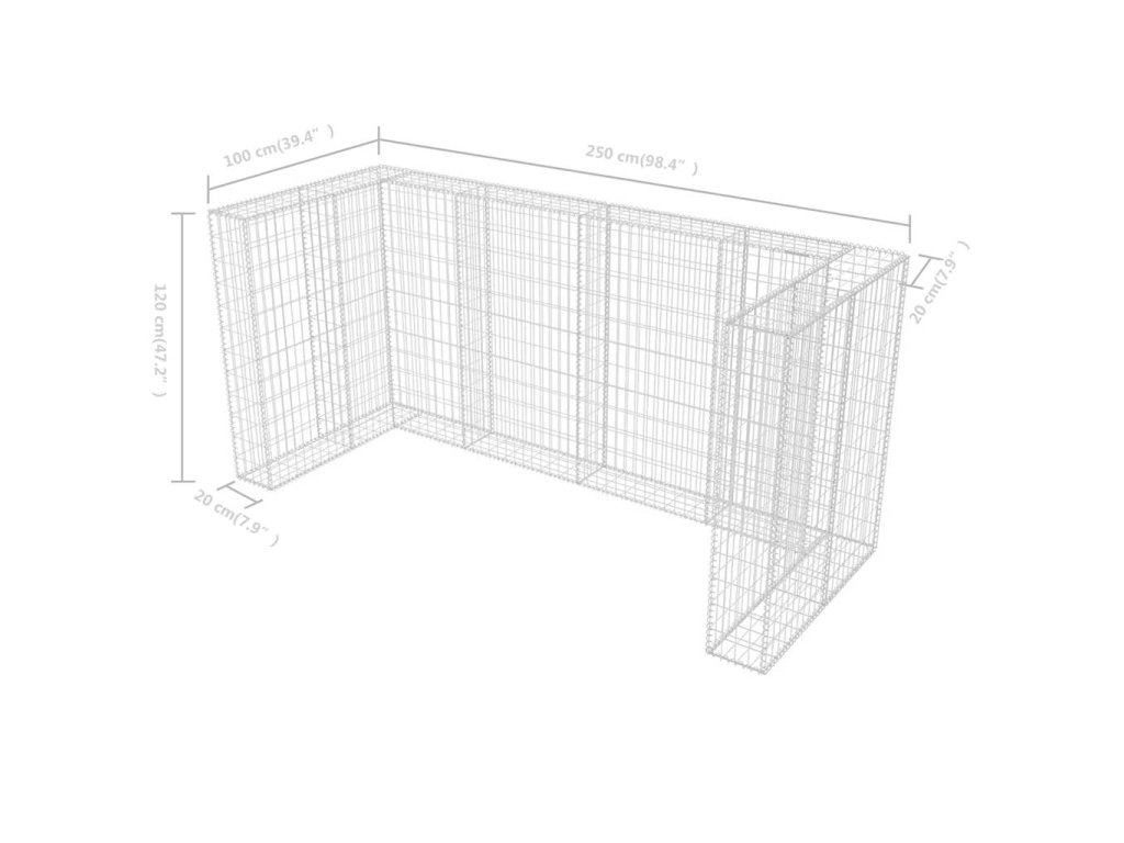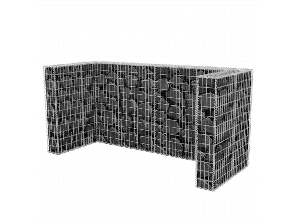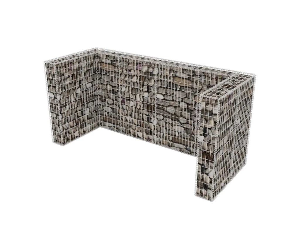 Táto stabilná a trvácna gabiónová ohrada na odpadkový kôš je vyrobená z pozinkovanej ocele, ktorá je odolná voči hrdzi a poveternostným vplyvom. Mriežku tvoria priečne a pozdĺžne drôty, ktoré sú bodovo zvarené na každom prieseku. Gabión je veľmi pevný, pretože je tvorený drôtom s priemerom 3,5 mm. Vrchné a spodné kryty gabiónu sa postarajú o to, aby jeho obsah po naplnení zostal na svojom mieste.