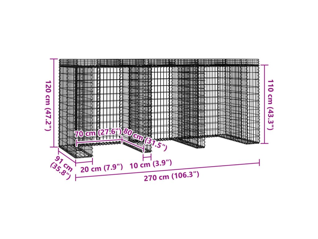 - Multifunkčný dizajn: Do tohto gabiónu sa zmestí nielen 3 koše, ale jeho vrchná časť je vhodná aj na pestovanie kvetov a rastlín, čím skrášli vašu záhradu.