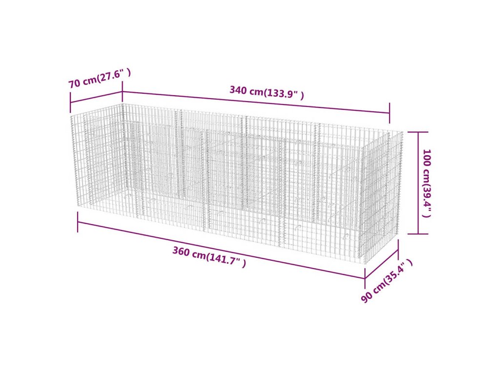 Robustný gabión je určený na to, aby sa do neho vložili kamene alebo štrk. Gabión je vyrobený z pozinkovanej ocele, ktorá je odolná voči hrdzi a poveternostným vplyvom, vďaka čomu je veľmi stabilný a trvácny. Mriežku tvoria priečne a pozdĺžne drôty, ktoré sú zvarené na každom prieseku pre čo najväčšiu stabilitu.