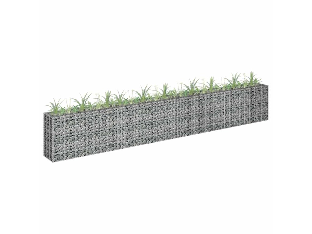 Tento gabiónový vyvýšený záhon predstavuje praktický spôsob, ako si v záhrade alebo na terase vytvoriť pevný a štýlový záhon s kvetmi či rastlinami.