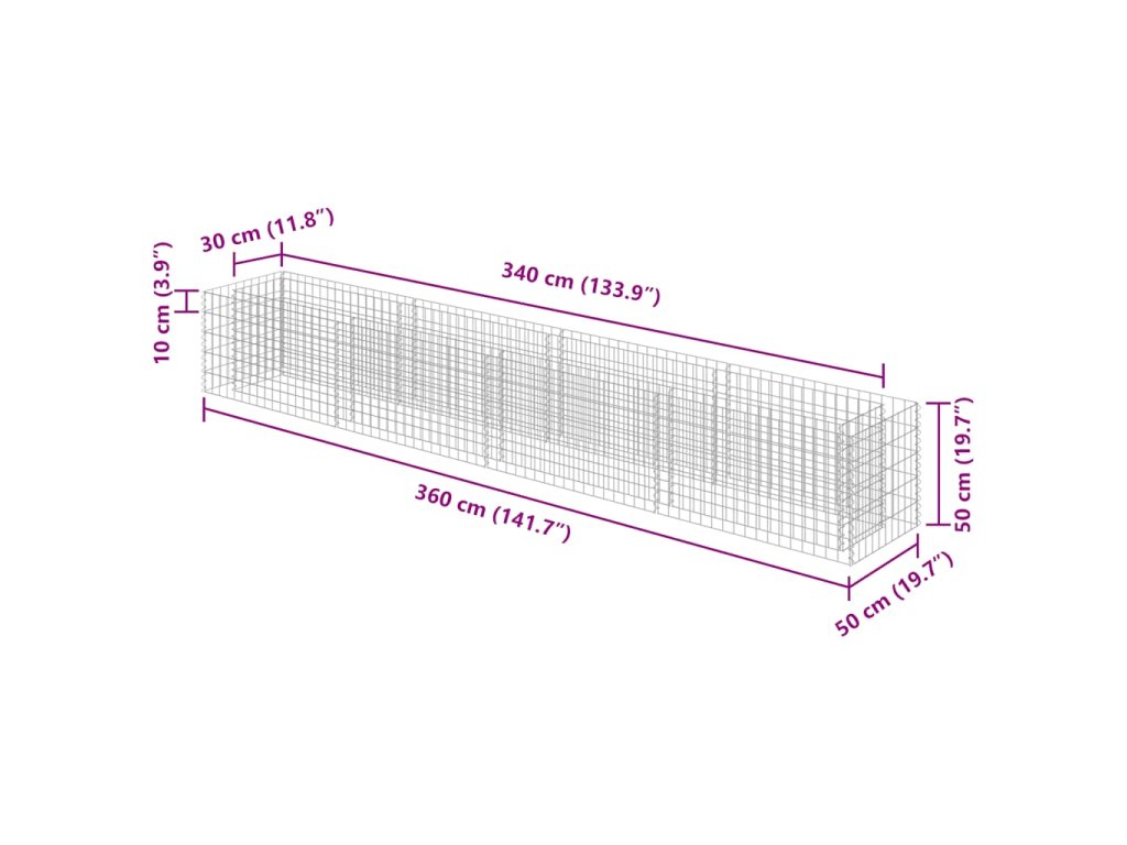 Stabilný gabión je určený na to, aby sa do neho vložili kamene alebo štrk. Gabión je vyrobený z pozinkovanej ocele, ktorá je odolná voči hrdzi a poveternostným vplyvom, vďaka čomu vytvorí veľmi stabilný a trvácny vyvýšený záhon. Mriežku tvoria priečne a pozdĺžne drôty, ktoré sú zvarené na každom prieseku pre čo najväčšiu stabilitu.