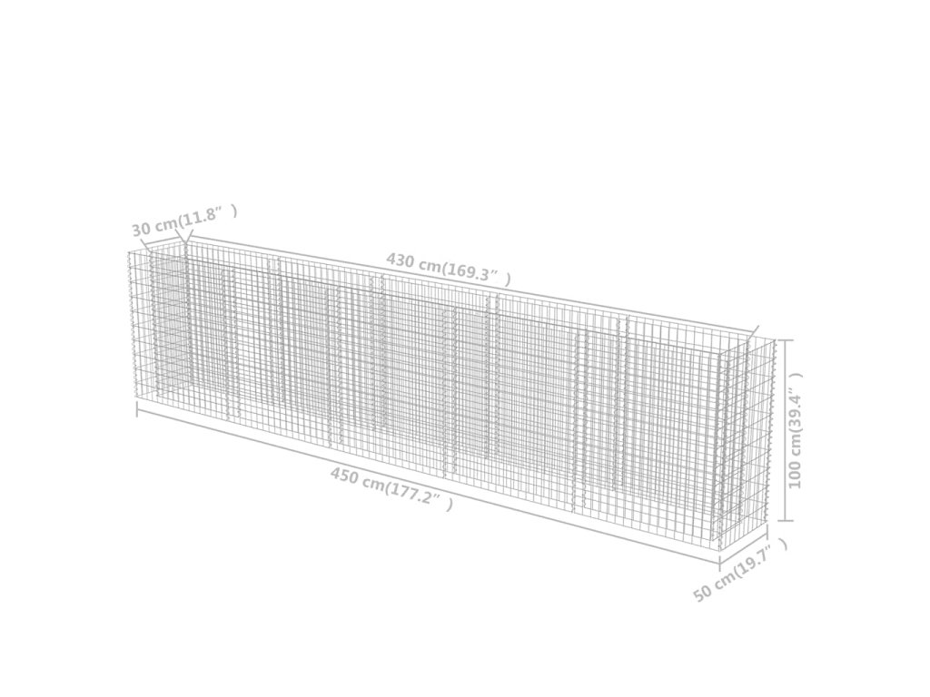 Stabilný gabión je určený na to, aby sa do neho vložili kamene alebo štrk. Gabión je vyrobený z pozinkovanej ocele, ktorá je odolná voči hrdzi a poveternostným vplyvom, vďaka čomu vytvorí veľmi stabilný a trvácny vyvýšený záhon. Mriežku tvoria priečne a pozdĺžne drôty, ktoré sú zvarené na každom prieseku pre čo najväčšiu stabilitu.