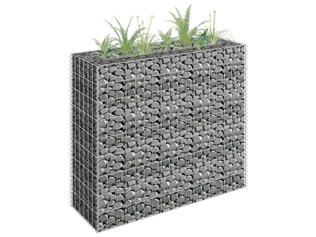 Tento gabiónový vyvýšený záhon predstavuje praktický spôsob, ako si v záhrade alebo na terase vytvoriť pevný a štýlový záhon s kvetmi či rastlinami.