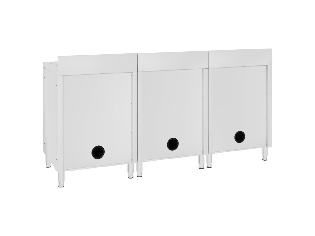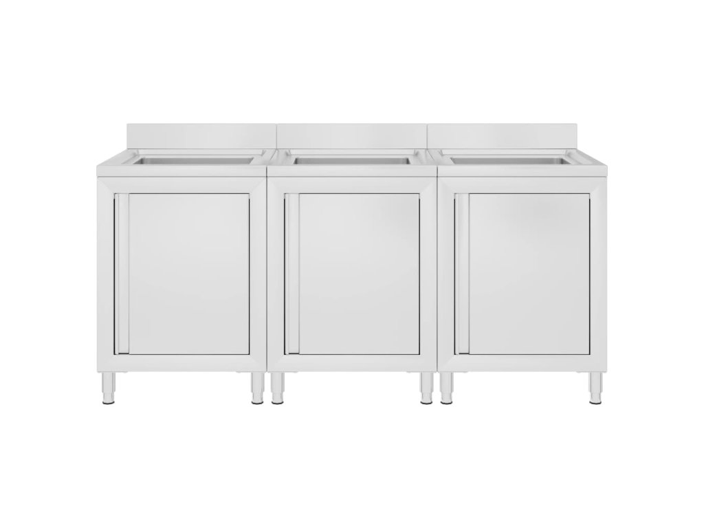 Táto skrinka je vyrobená z kvalitnej nehrdzavejúcej ocele, je robustná, nezhrdzavie a ľahko sa čistí. Skrinka poskytuje dostatok úložného priestoru pre čistiace potreby a príslušenstvo. Nastaviteľné nožičky udržujú skrinku v rovine aj na nerovných podlahách. Obsahuje 10 cm zástenu a otvor na odtokovú rúru.