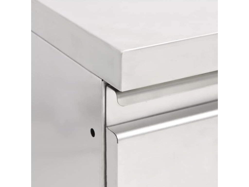 Táto úložná skrinka je vyrobená z kvalitnej nehrdzavejúcej ocele, je robustná, nezhrdzavie a ľahko sa čistí. Skrinka poskytuje dostatok úložného priestoru pre čistiace potreby a príslušenstvo. Nastaviteľné nožičky udržujú skrinku v rovine aj na nerovných podlahách. Obsahuje 10 cm zástenu a otvor na odtokovú rúru.
