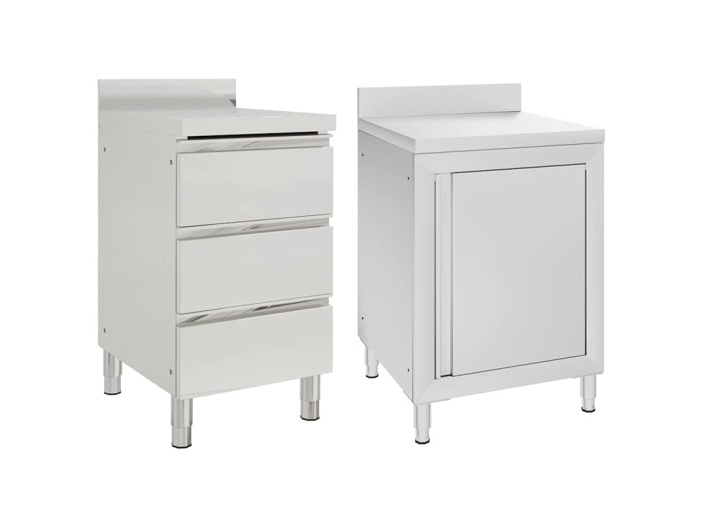 Gastro skrinku s drezom, skrinku s odtokovou doskou a pracovný stôl so skrinkou nájdete v našom internetovom obchode. Môžu byť navzájom prepojené, aby vyhoveli vašim konkrétnym potrebám. Montážne príslušenstvo je súčasťou balenia.