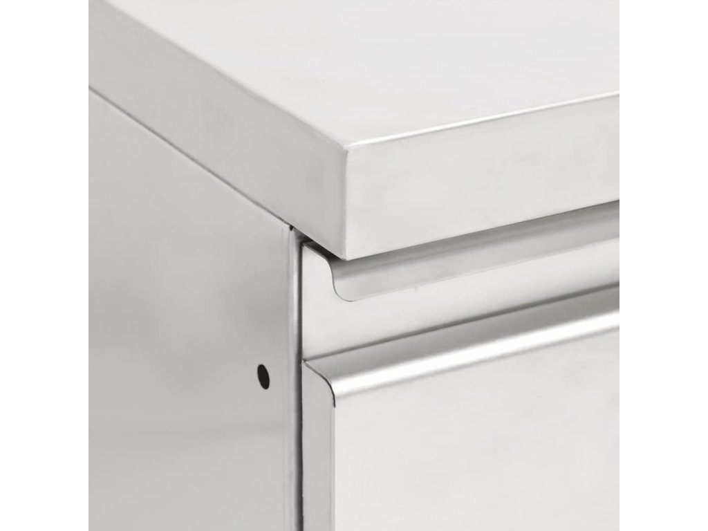 Táto úložná skrinka je vyrobená z kvalitnej nehrdzavejúcej ocele, je robustná, nezhrdzavie a ľahko sa čistí. Skrinka poskytuje dostatok úložného priestoru pre čistiace potreby a príslušenstvo. Nastaviteľné nožičky udržujú skrinku v rovine aj na nerovných podlahách. Obsahuje 10 cm zástenu a otvor na odtokovú rúru.