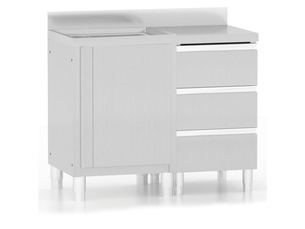 Gastro skrinku s drezom, skrinku s odtokovou doskou a pracovný stôl so skrinkou nájdete v našom internetovom obchode. Môžu byť navzájom prepojené, aby vyhoveli vašim konkrétnym potrebám. Montážne príslušenstvo je súčasťou balenia.