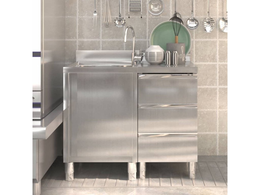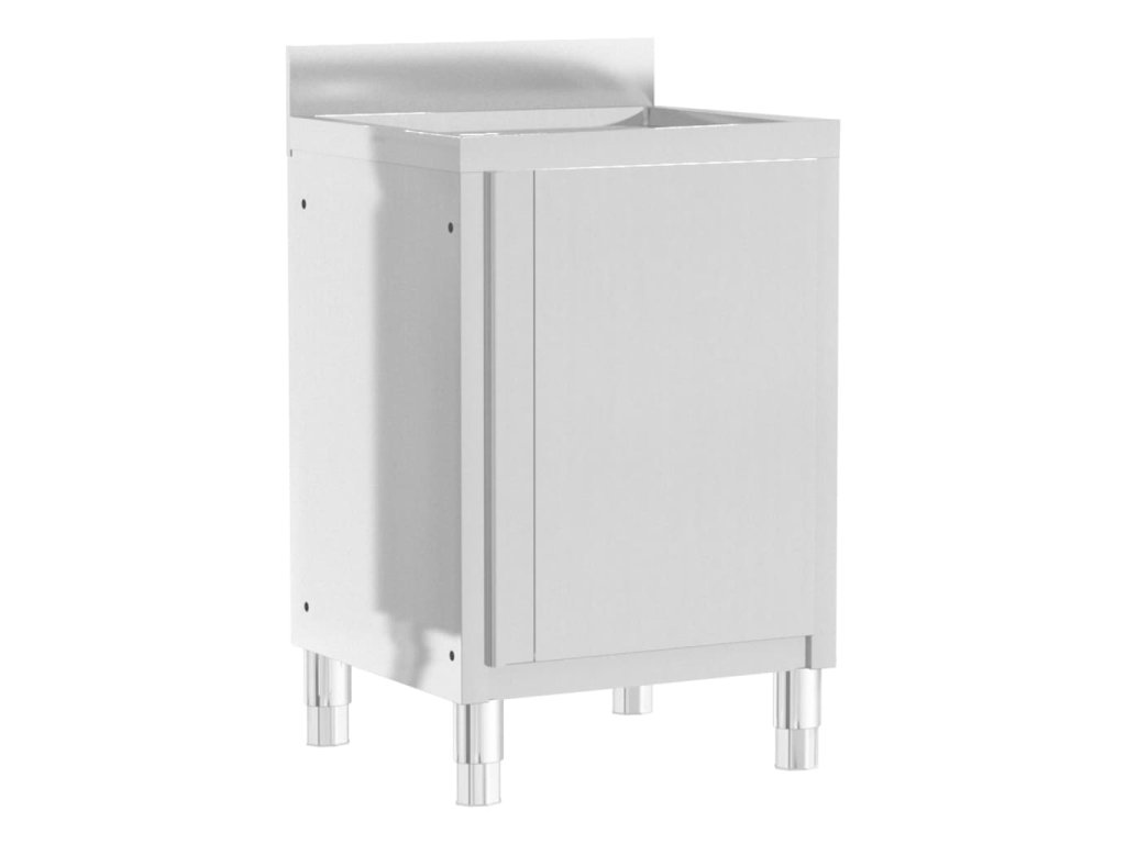 Táto úložná skrinka je vyrobená z kvalitnej nehrdzavejúcej ocele, je robustná, nezhrdzavie a ľahko sa čistí. Skrinka poskytuje dostatok úložného priestoru pre čistiace potreby a príslušenstvo. Nastaviteľné nožičky udržujú skrinku v rovine aj na nerovných podlahách. Obsahuje 10 cm zástenu a otvor na odtokovú rúru.