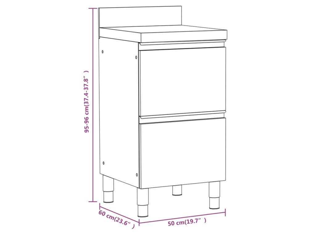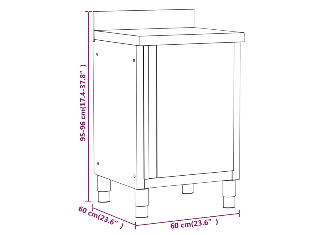 Táto úložná skrinka je vyrobená z kvalitnej nehrdzavejúcej ocele, je robustná, nezhrdzavie a ľahko sa čistí. Skrinka poskytuje dostatok úložného priestoru pre čistiace potreby a príslušenstvo. Nastaviteľné nožičky udržujú skrinku v rovine aj na nerovných podlahách. Obsahuje 10 cm zástenu a otvor na odtokovú rúru.
