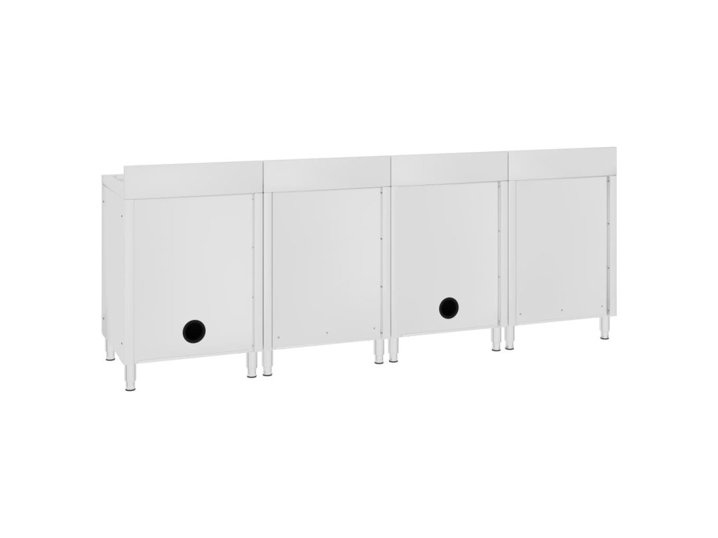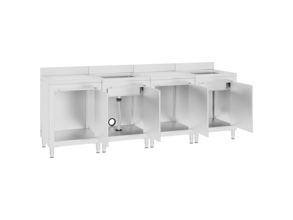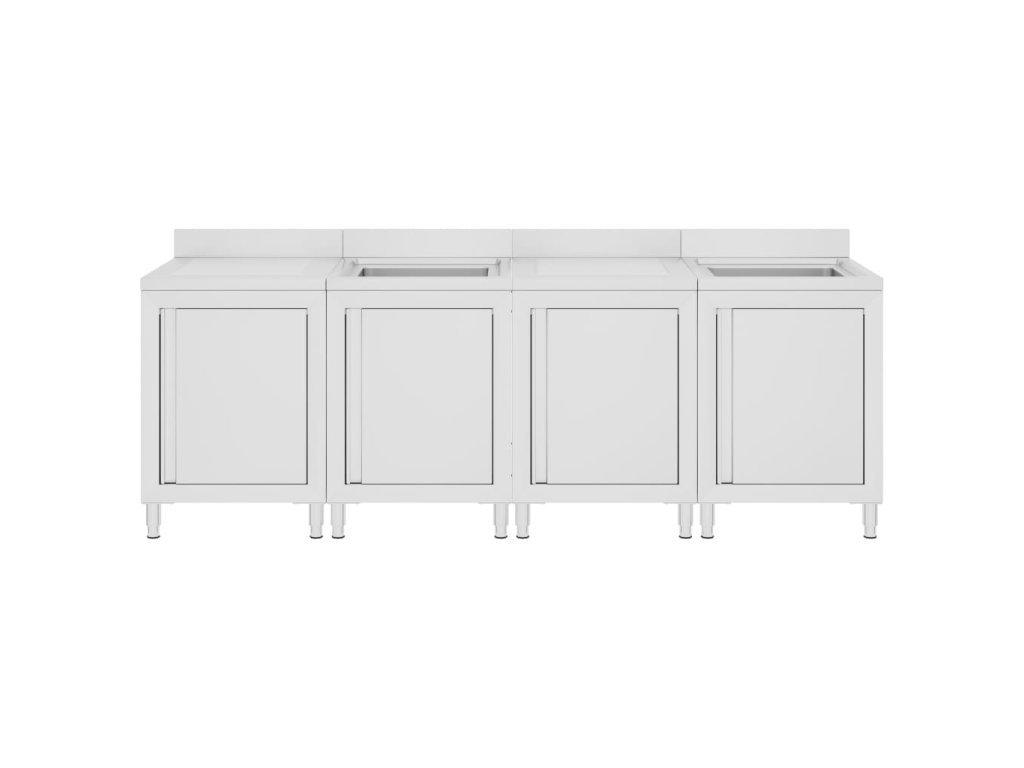 Gastro skrinku s drezom, skrinku s odtokovou doskou a pracovný stôl so skrinkou s rozmermi 60x60x96 cm nájdete v našom internetovom obchode. Môžu byť navzájom prepojené, aby vyhovovali vašim konkrétnym potrebám. Montážne príslušenstvo je súčasťou balenia.