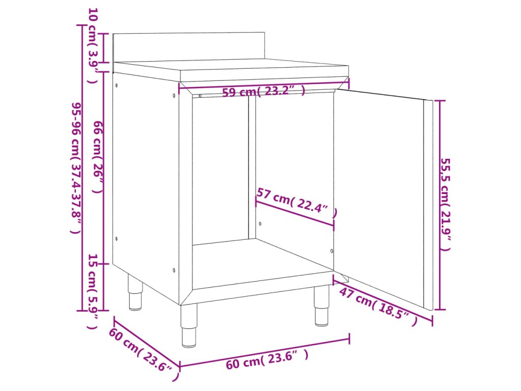 Táto skrinka je vyrobená z kvalitnej nehrdzavejúcej ocele, je robustná, nezhrdzavie a ľahko sa čistí. Skrinka poskytuje dostatok úložného priestoru pre čistiace potreby a príslušenstvo. Nastaviteľné nožičky udržujú skrinku v rovine aj na nerovných podlahách. Obsahuje 10 cm zástenu.