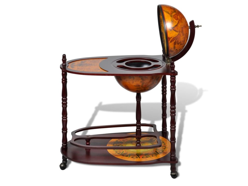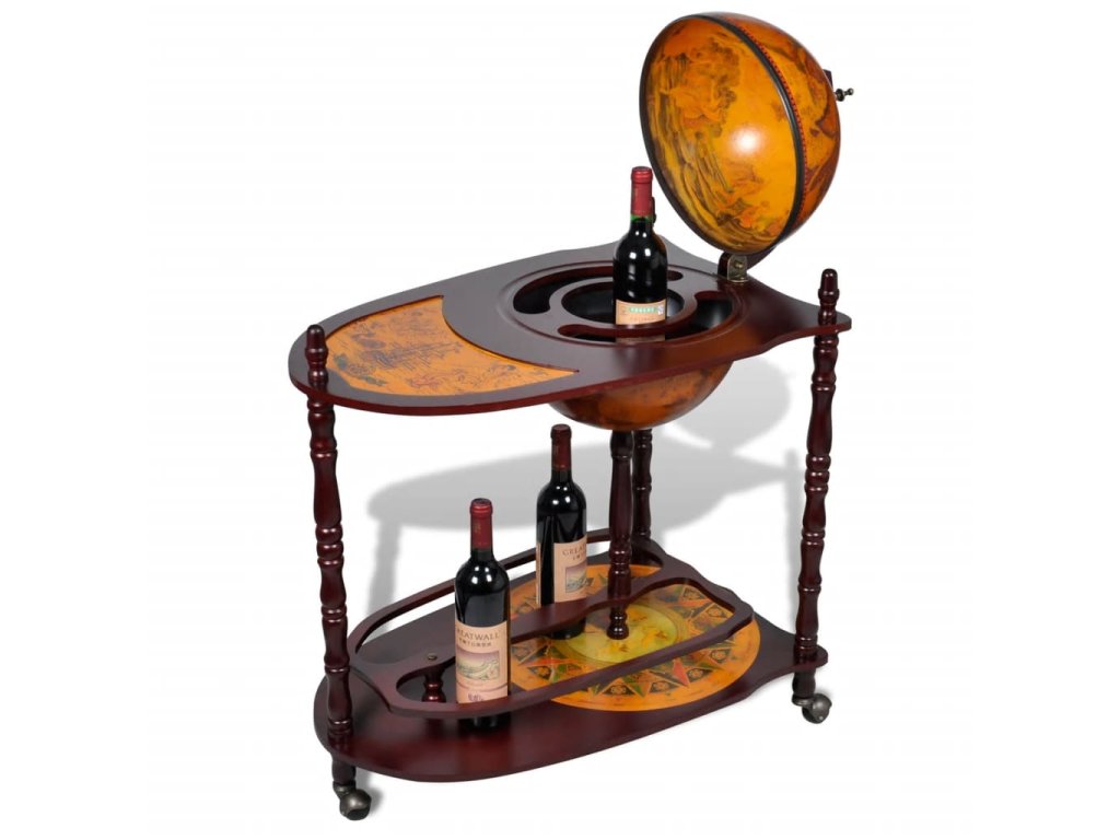Drevený glóbus sa dá otvoriť a v jeho vnútri sa nachádza veľký bar s množstvom priestoru na víno, likéry, nápoje a poháre, takže si budete môcť svoje fľaše a poháre úhľadne uložiť a zároveň k nim budete mať jednoduchý prístup. Glóbus je navyše vybavený predĺženým stolíkom a policou v spodnej časti, ktoré taktiež poslúžia ako skvelé miesto na odkladanie pohárov a fliaš.