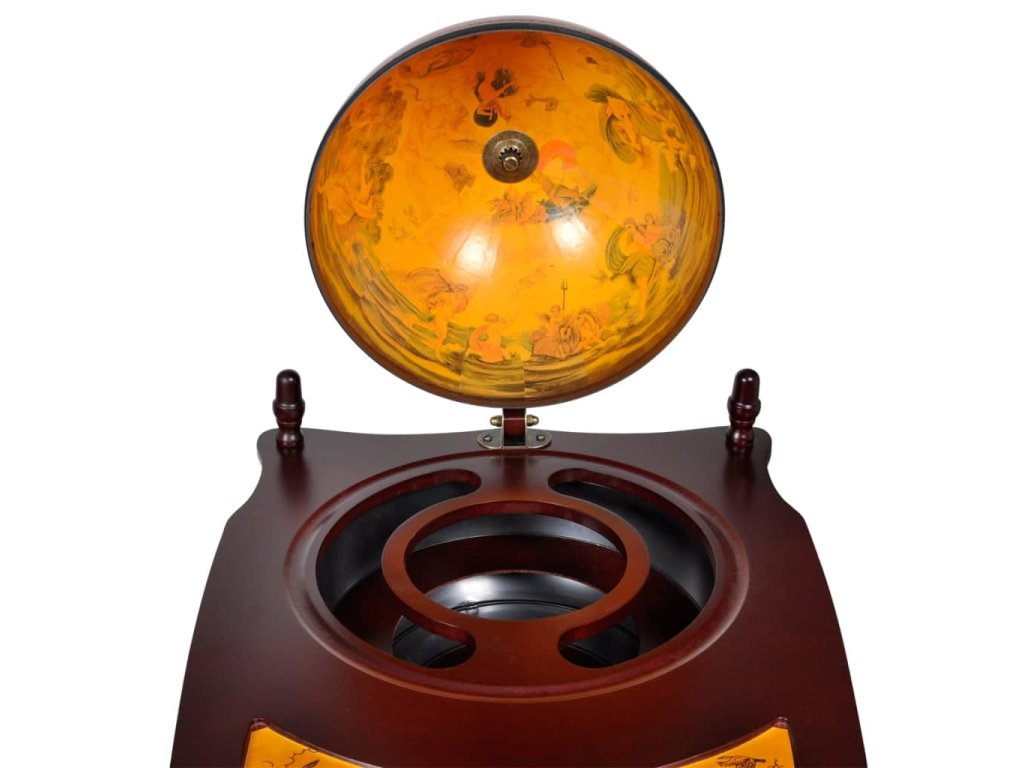 Vonkajší povrch glóbusu je obalený replikou starej námorníckej mapy a stôl, podstavec a vnútro glóbusu zdobia repliky renesančných malieb, a tak je tento glóbusový bar skutočným umeleckým kúskom a ozajstnou dekoráciou do domácnosti či kancelárie.