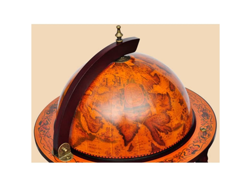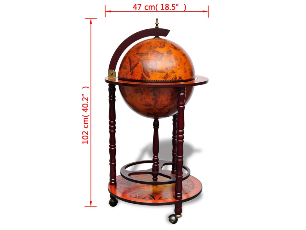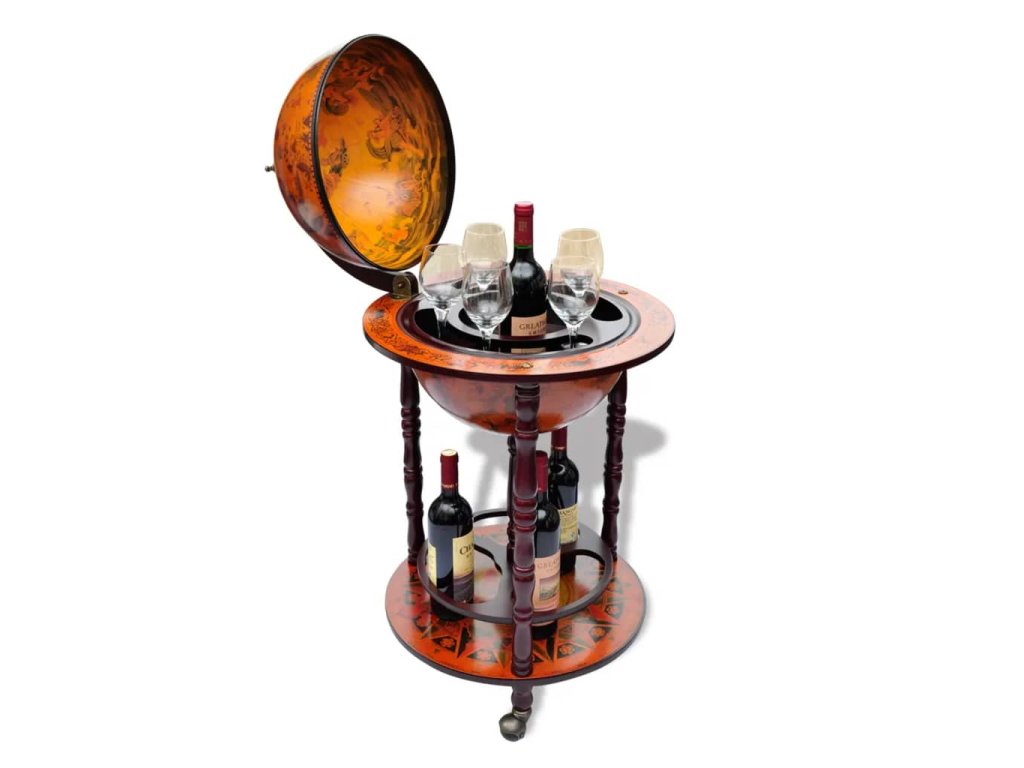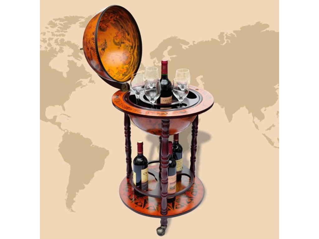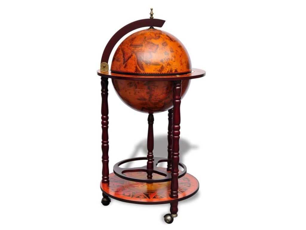 Glóbusový bar stojí na kolieskach, a preto sa dá jednoducho presunúť. Zdobí ho starobylá mapa sveta. Do držaka sa zmesti viacero fliaš a pohárov. Upozorňujeme, že fľaše a poháre nie sú súčasťou balenia.